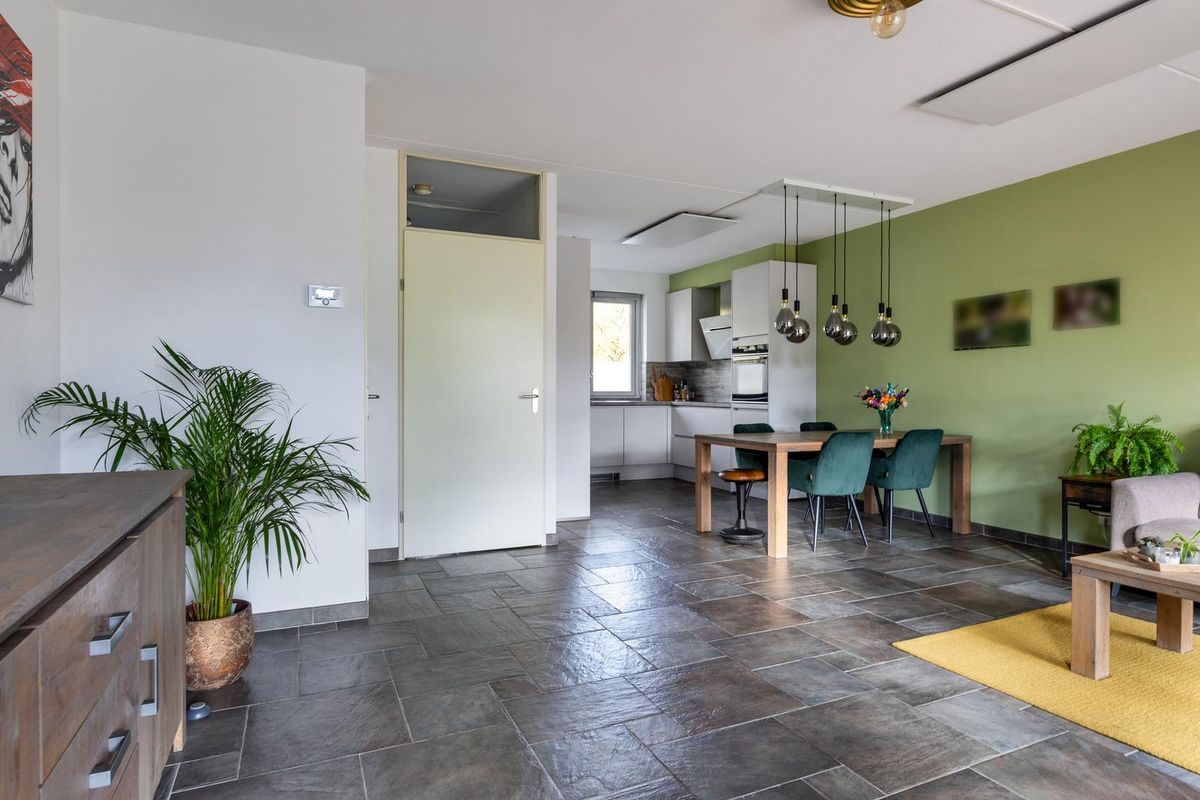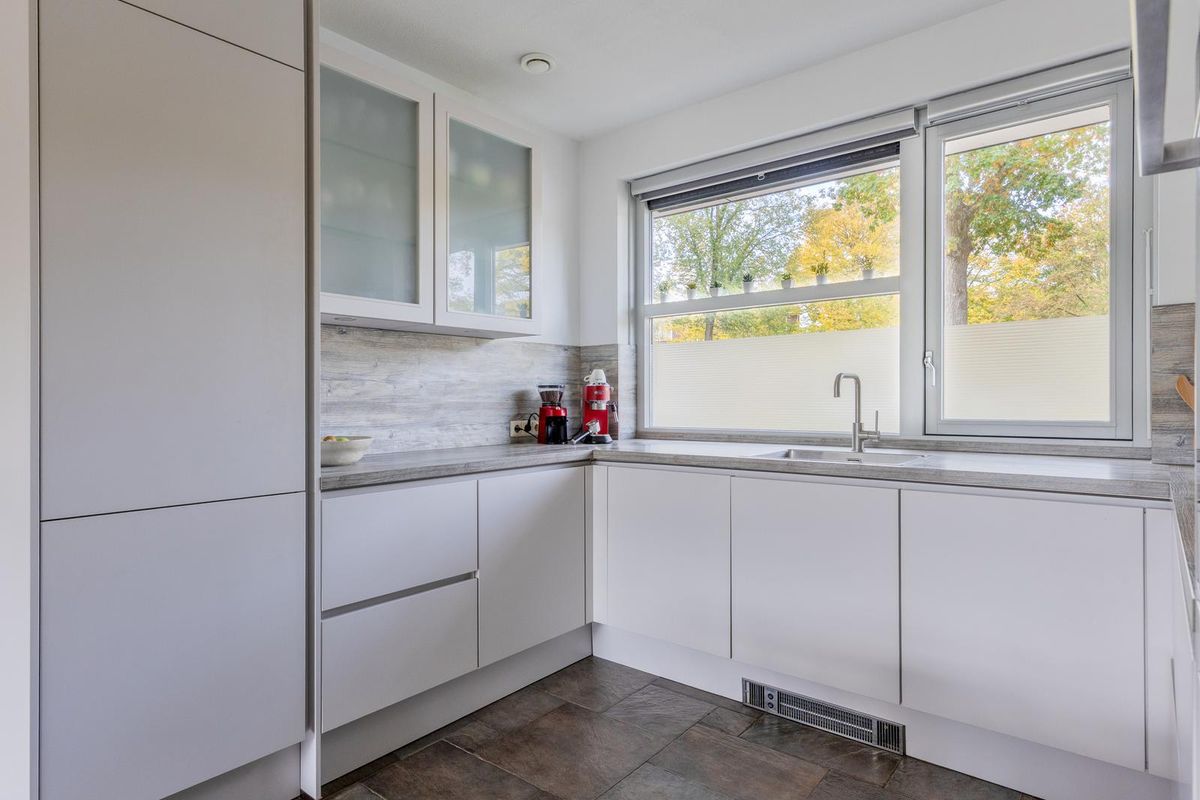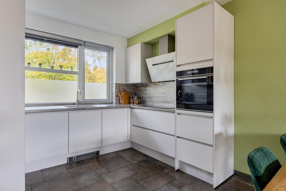 De ruime woonkamer is een plek om te ontspannen én te verbinden. Met lichtinval van zowel de voor- als achterkant voelt deze ruimte heerlijk open aan. Je hebt hier volop plek voor een grote eethoek én een gezellige zithoek. De moderne open keuken is afgewerkt met strakke witte kastjes en uitgerust met alle gemakken: ingebouwde koelkast, vriezer, combi-oven, vaatwasser en een inductiekookplaat. Door het raam aan de voorzijde valt ook hier prettig daglicht binnen.
