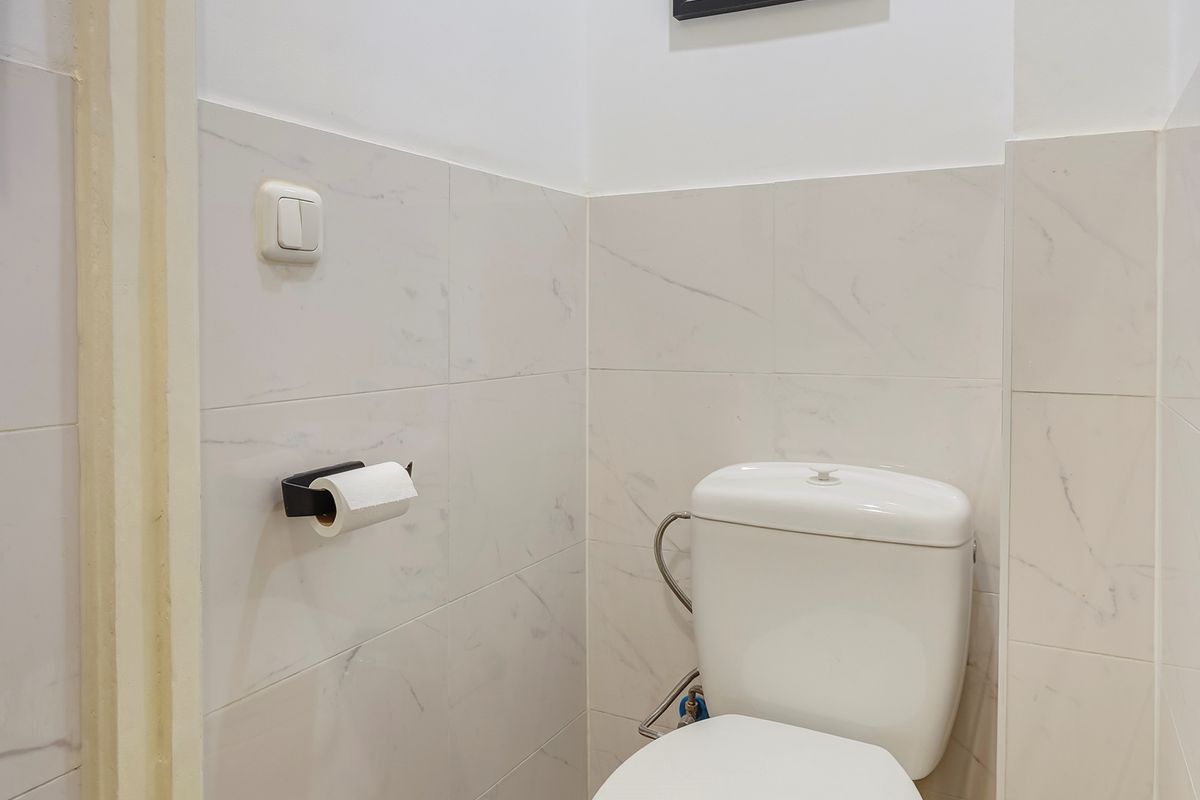 Op de eerste woonlaag treffen we een overloop. Vanaf de overloop is er toegang tot het toilet. De toiletruimte is gerenoveerd en voorzien van een staand toilet.