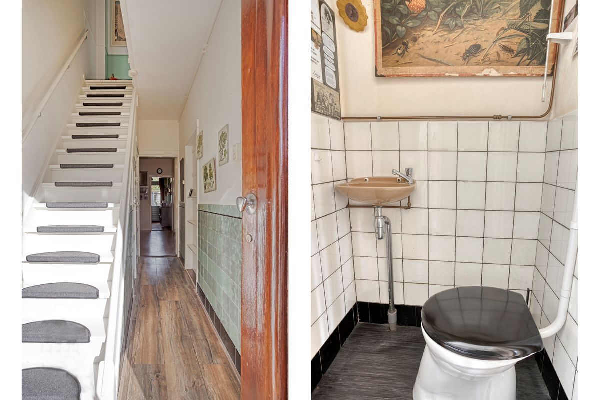 Via de entree kom je in de hal met trapopgang naar de eerste verdieping, een praktische trapkast met meterkast en een nette toiletruimte.