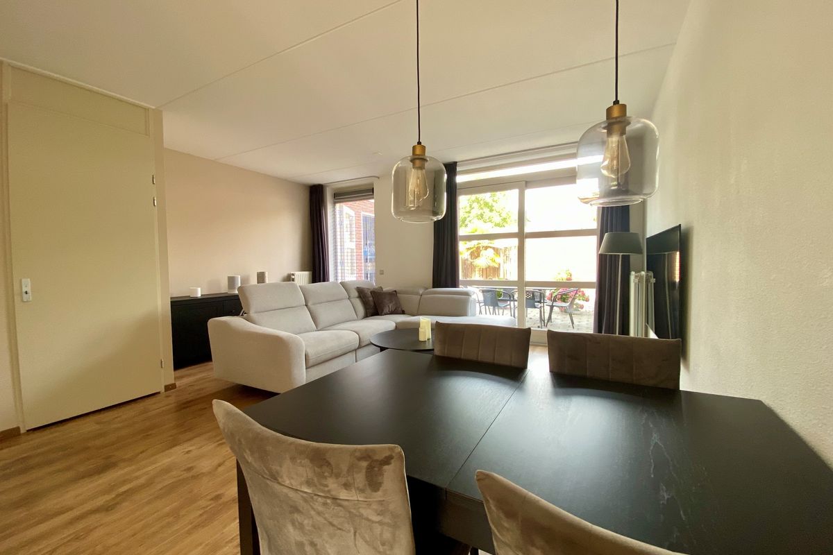 - Lichte en ruime woonkamer met schuifpui naar het terras en de sfeervolle, privacy volle tuin