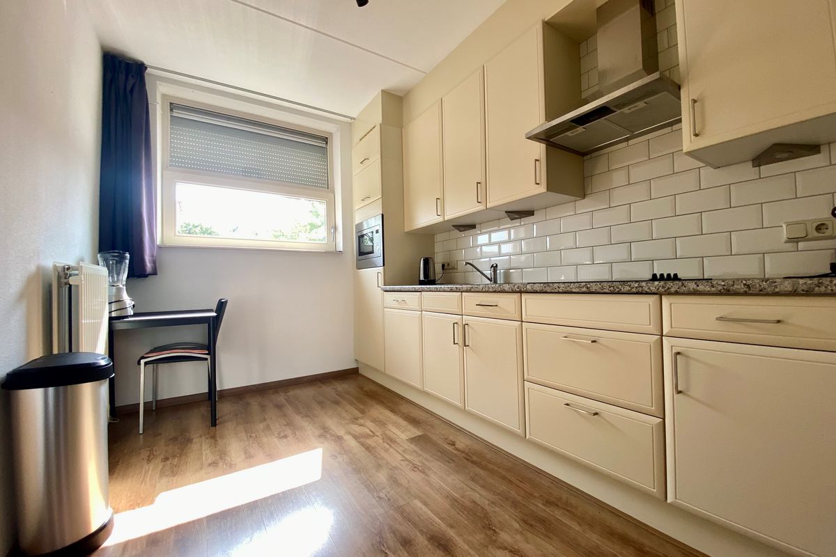 - Open keuken met moderne aanbouwkeuken, voorzien van diverse inbouwapparatuur: koelkast, combimagnetron, gasfornuis, vaatwasser en afzuigkap. Handige trapkast.