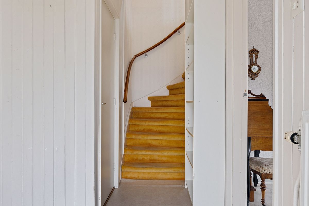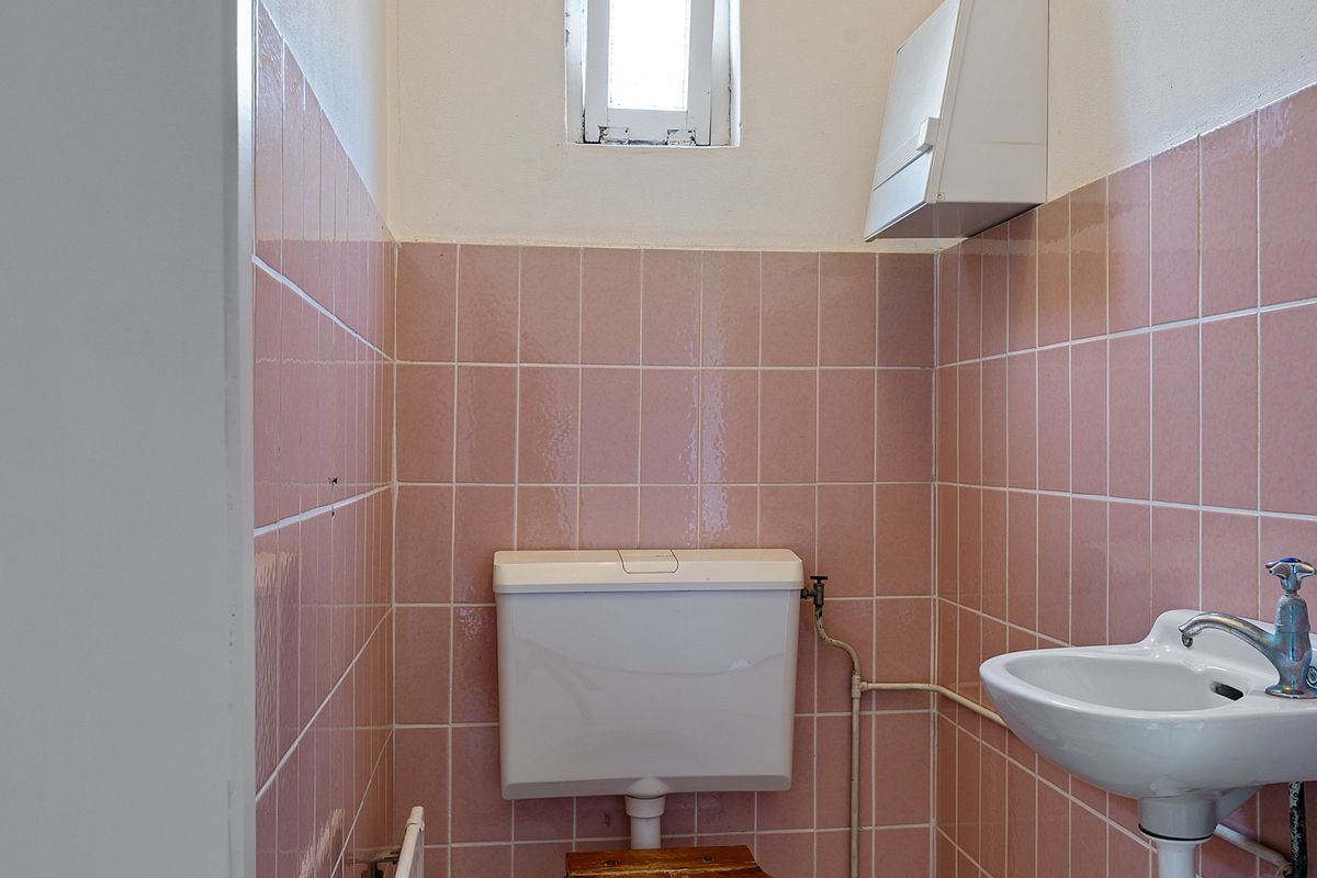 Met een entree in het midden van het huis, worden de vertrekken op de begane grond in tweeën gedeeld. De hal, met eenvoudige toiletruimte met fonteintje, meterkast en trapopgang, biedt toegang tot al deze ruimtes. Aan de voorzijde, met zicht op de groene voortuin en de straat, is een bijna 30m² grote woonkamer met ramen aan twee zijden te vinden. Vanuit de woonkamer is de praktische trapkast bereikbaar. Aan de hal is ook de eerste badkamer te vinden. Gedateerd, maar met voldoende ruimte voor een douche en wastafel met meubel. Deze badkamer heeft nu nog 2 deuren, waarvan er eentje in de bijkeuken uitkomt. Maak je die deur dicht, dan is er ruimte voor bijvoorbeeld een dubbele wastafel met meubel en een royalere douche.