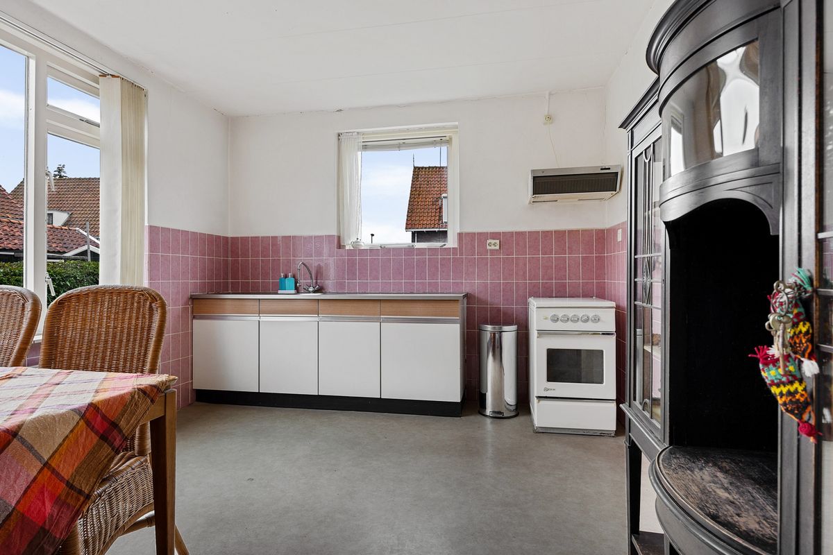 Aan de tuingerichte achterzijde is een praktisch bemeten, verouderde keukenruimte te vinden, die aansluit op de naastgelegen bijkeuken met aansluiting voor de wasmachine. Beide ruimtes hebben de potentie om, na verbouwing, samen een heerlijke grote woonkeuken te worden. Vanuit de bijkeuken bereik je de verwarmde, inpandige garage met toegang tot de kelder. Hier is de recente Cv-ketel (Nefit, 2022) te vinden. Vanuit de garage bereik je de achtergelegen tuin.