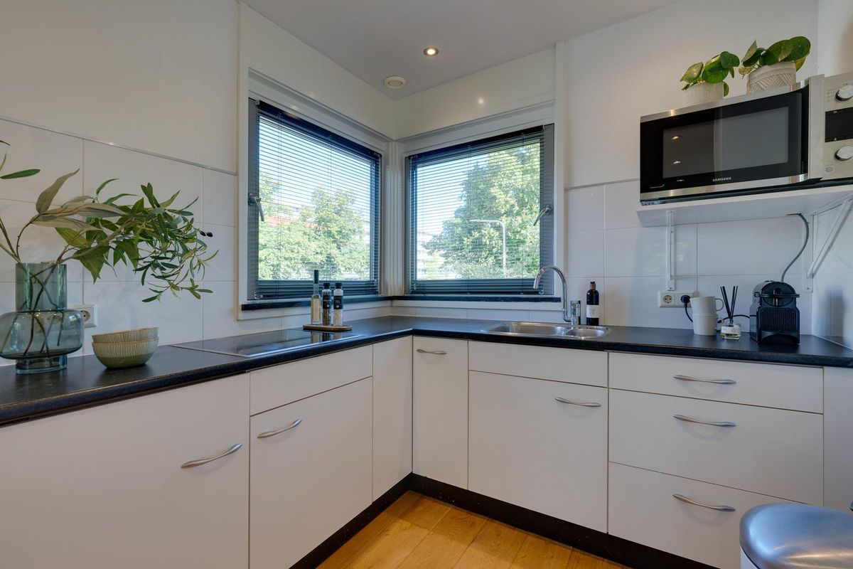 De keuken is voorzien van diverse inbouwapparatuur waaronder een elektrische kookplaat, magnetron en vaatwasser. Er is genoeg ruimte voor een knus eetgedeelte en via de woonkamer heb je toegang tot het balkon een fijne plek om in de ochtend te genieten van een kop koffie of juist in de middag en avond van de zon dankzij de gunstige zuidwestligging.