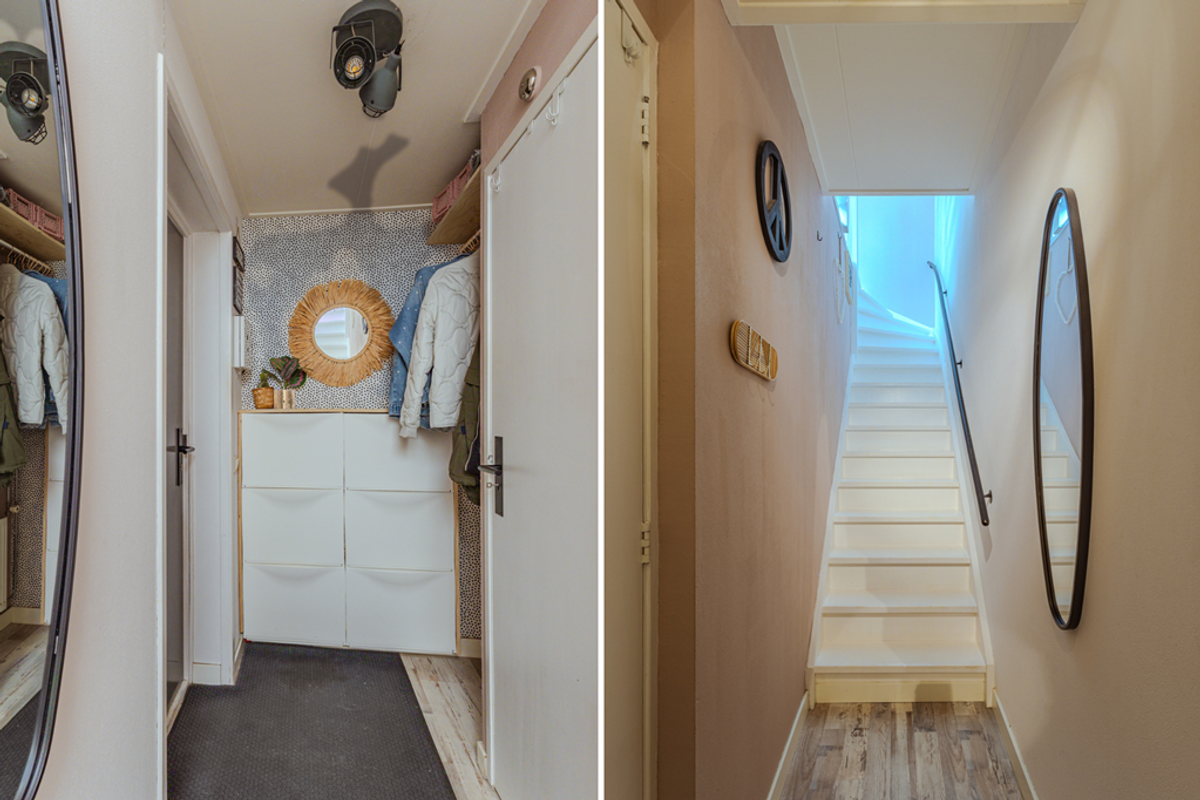 De entree tot de bovenwoning vindt plaats via de Christiaan Huygensstraat in de hal voorzien van de meterkast, garderoberuimte en de trapopgang.