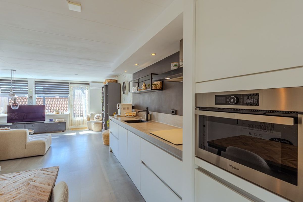 Via de trapopgang komt u direct in de sfeervolle woonkamer voorzien van grote raampartijen, airconditioning, vaste kastruimte en toegang tot de open keuken en het zonnige dakterras. Ook de nette toiletruimte is van hieruit bereikbaar en voorzien van een fonteintje en een zwevend toilet. De open keuken (2019) is rijkelijk voorzien van onder meer een inductiekookplaat, combi-oven/magnetron en een vaatwasser. Ook is in deze ruimte plaats voor een eettafel. Op deze woonlaag zijn tevens de 1ste ruime slaapkamer met badkamer en suite te bereiken. Deze laatste is recentelijk vernieuwd, modern uitgevoerd en uitgerust met een wasmeubel en douchecabine.