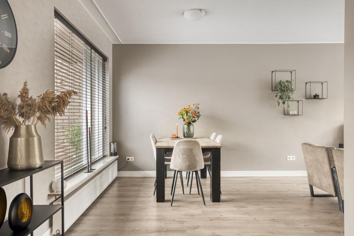 Hier is ruimte voor een gezellige zithoek aan de straatkant en een royale eettafel richting de tuin.