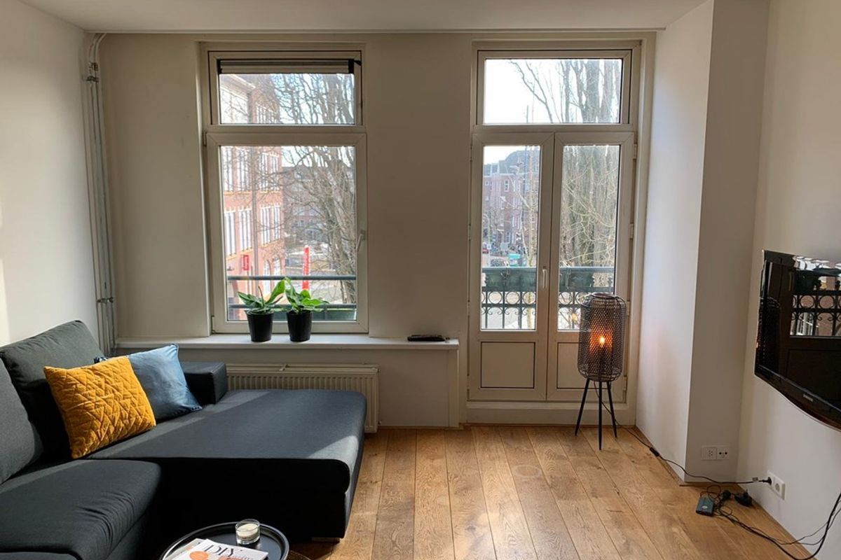 De woonkamer is zeer smaakvol ingericht met onder andere een ruime hoekbank. De openslaande deuren geven toegang tot het Franse balkon met een fantastisch vrij uitzicht over het Timorplein.