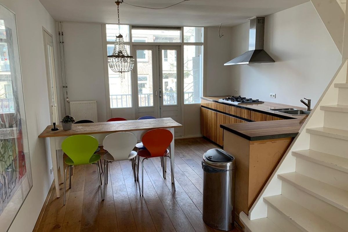 The living room is very tastefully furnished, including a spacious corner sofa. The French doors give access to the French balcony with a fantastic unobstructed view over the Timorplein.