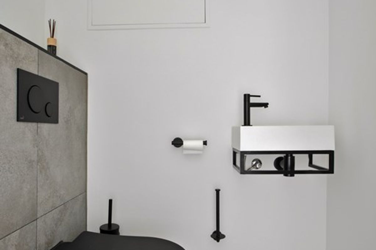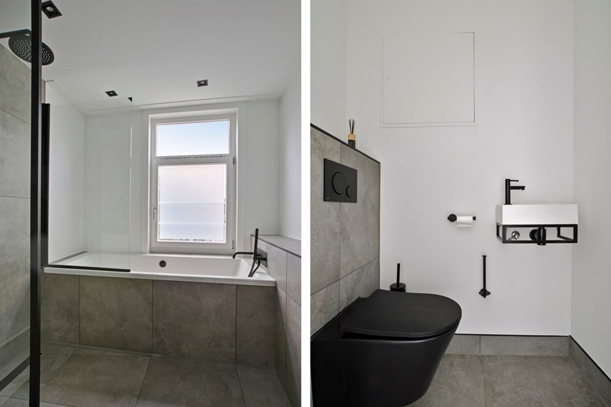 Strakke en moderne afwerking van de badkamer en het separate toilet