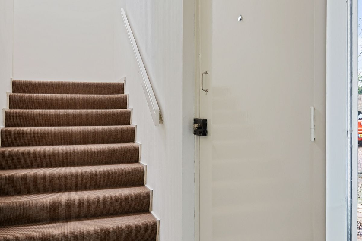Via de voordeur aan de zijkant van de woning kom je binnen in de ruime entree, hier vind je aan de linkerzijde een ruime kast. Daarnaast ligt de nieuwe meterkast. Via de brede trap loop je naar boven....