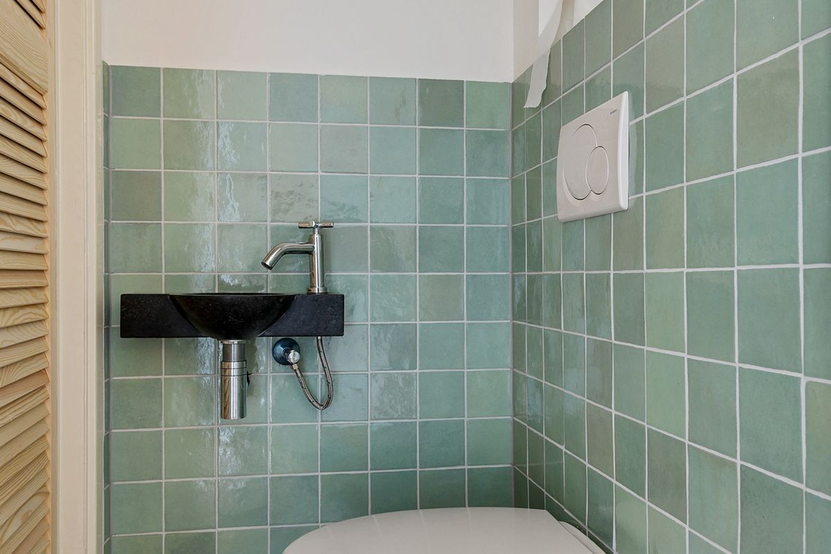 Boven aangekomen op de overloop is aan je linkerkant de deur naar de toilet, hier vind je in de kast de installatie van de vloerverwarming. Door de glazen deur loop je de woonkamer in met gelijk aan je rechterhand de sfeervolle open keuken met inbouwapparatuur zoals de 5 zone inductie kookplaat, afzuigkap, inbouwkoelkast, afwasmachine en sfeervolle verlichting binnen. In de woonkamer zijn grote raampartijen die zorgen voor veel lichtinval en de deur naar het ruime balkon. Naast de keuken is de trap naar de 2de verdieping met daaronder de trapkast met de nodige bergruimte.