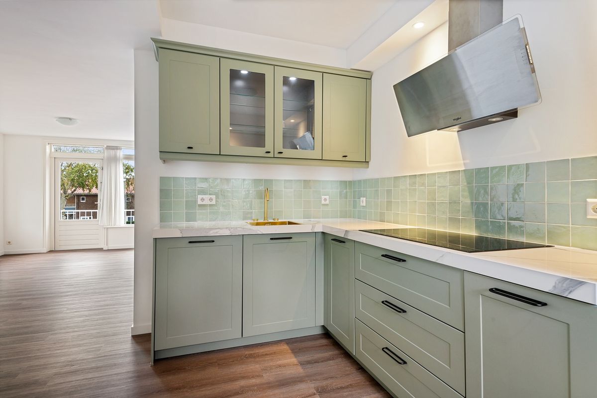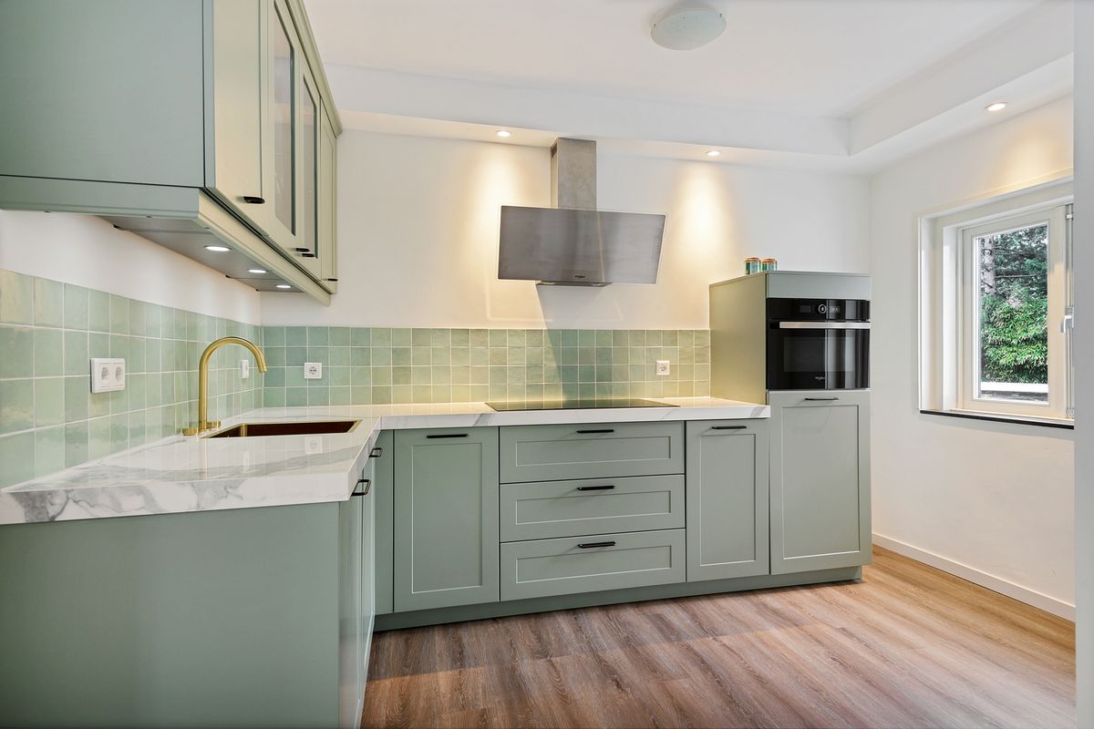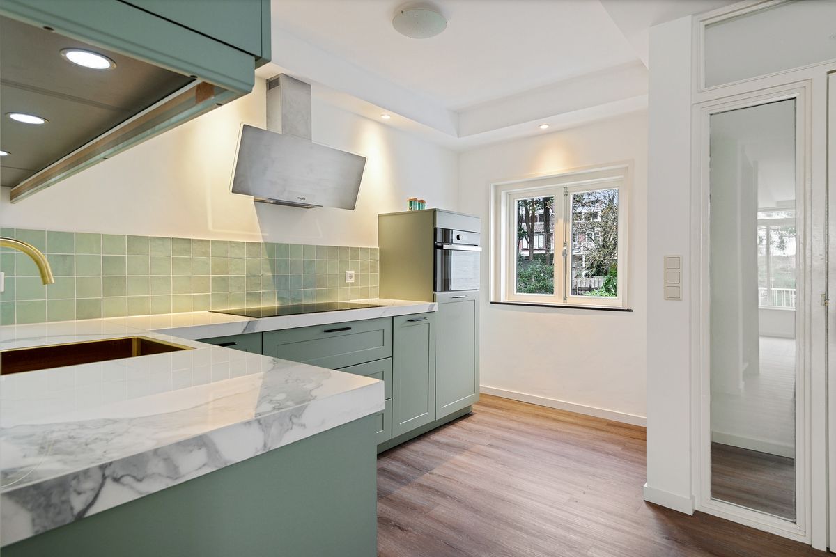 De nieuwe open keuken is voorzien van alle gemakken zoals een 5 zone inductiekookplaat, afzuigkap, combi-overn, inbouwkoelkast en vaatwasser. Via de openslaande deur in de woonkamer kom je op het ruime balkon gelegen op het Z/O maar tijdens de warme dagen kun je ook zitten op het gedeelte gelegen op het N/O.
