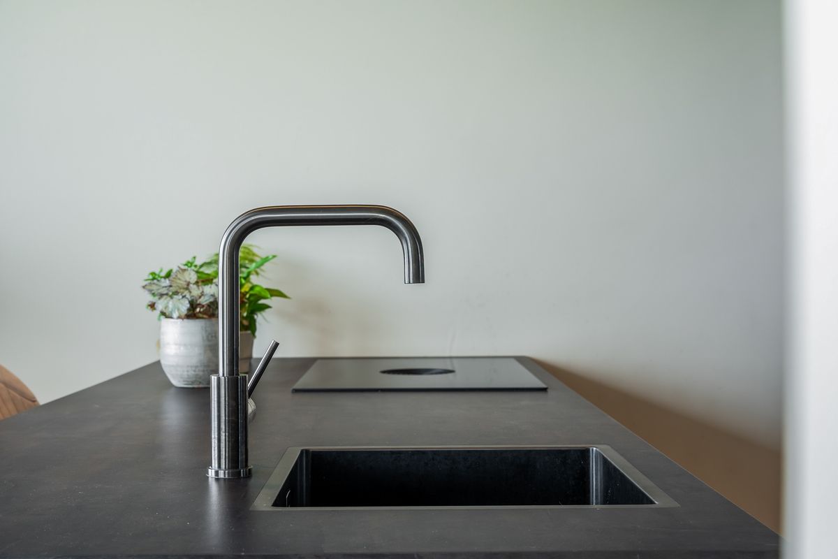 De ruime woonkamer grenst aan een fraaie eetkeuken, dé plek waar culinair genieten centraal staat. De smaakvolle keuken is van alle denkbare gemakken voorzien: een inductie kookplaat met geïntegreerde afzuiging (Bora Bora), zodat kook- en geurexplosies netjes binnenboord blijven. Verder tref je een apothekerskast voor al je kruiden en voorraad, een royaal koffie- en thee-eiland – ideaal voor een goed gesprek met een warme mok in de hand – plus hoogwaardige inbouwapparatuur zoals een koelkast, losse vriezer, vaatwasser en oven met grillfunctie. Zo wordt koken elke dag opnieuw een feestje.