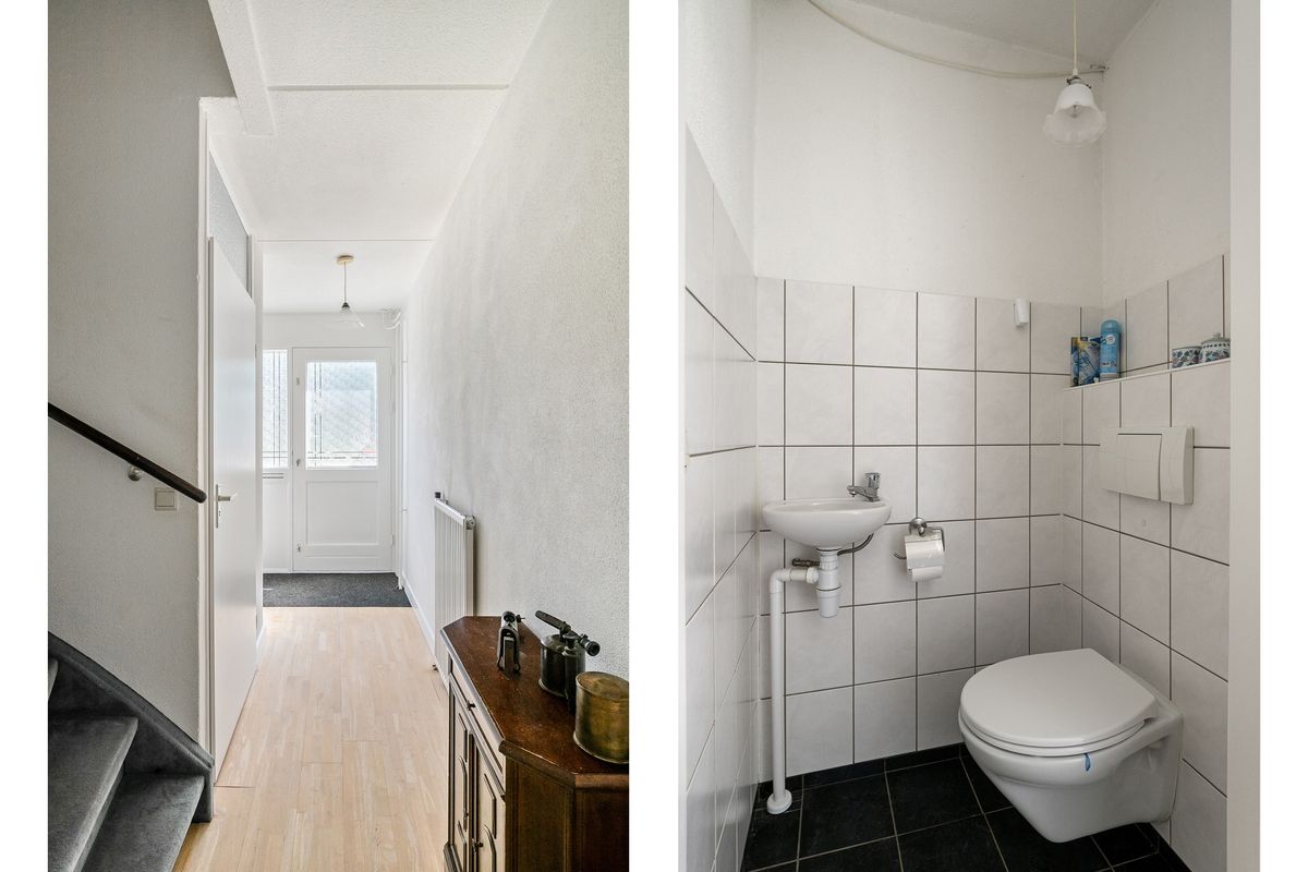 Entree; waar zich een toilet en toegang tot de eerste verdieping als ook de kelder bevinden. Vanuit de hal loop je door naar de open keuken v.v. diverse inbouwapparatuur, welke naadloos overgaat in de lichte en ruime woonkamer. Deze open indeling zorgt voor een prettige leefruimte met veel lichtinval!