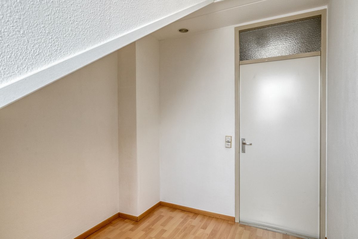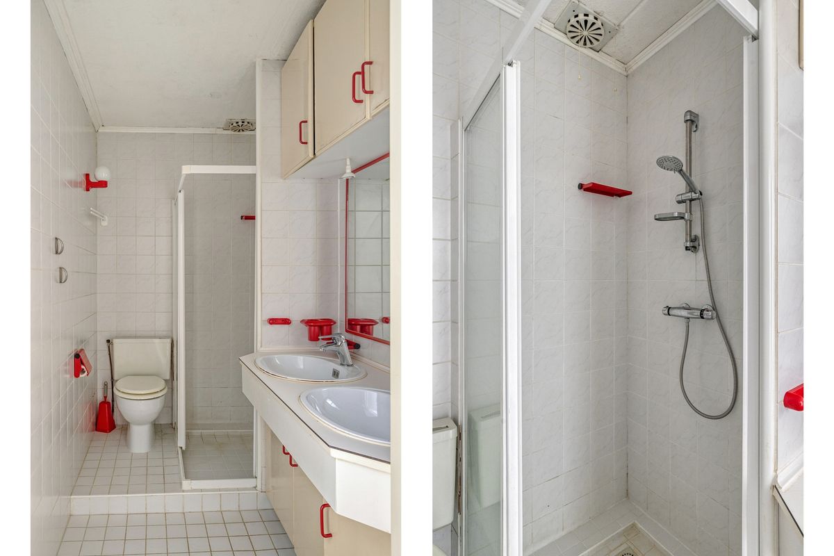 Overloop; biedt toegang tot vier slaapkamers. Eén van de slaapkamers beschikt over een vaste kast, ideaal voor extra bergruimte. De badkamer is uitgerust met een inloopdouche, een dubbel wastafelmeubel en een toilet.