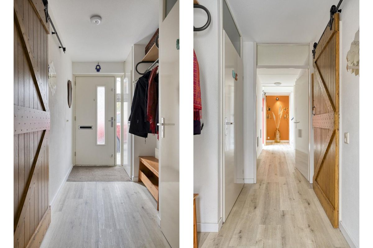 Bij aankomst valt direct de ruime, onderhoudsvriendelijke oprit op: volledig bestraat en geschikt voor meerdere auto's. Ook in de straat is er voldoende parkeergelegenheid. Via de nette voortuin kom je bij de voordeur, waar je binnenstapt in een warme, verzorgde hal met strakke wanden en een comfortabele vloer. Vanuit hier heb je toegang tot het toilet, de berging én het tweede deel van de hal die leidt naar de bijkeuken, eetkamer en trap naar boven. Een uitnodigende eerste indruk!