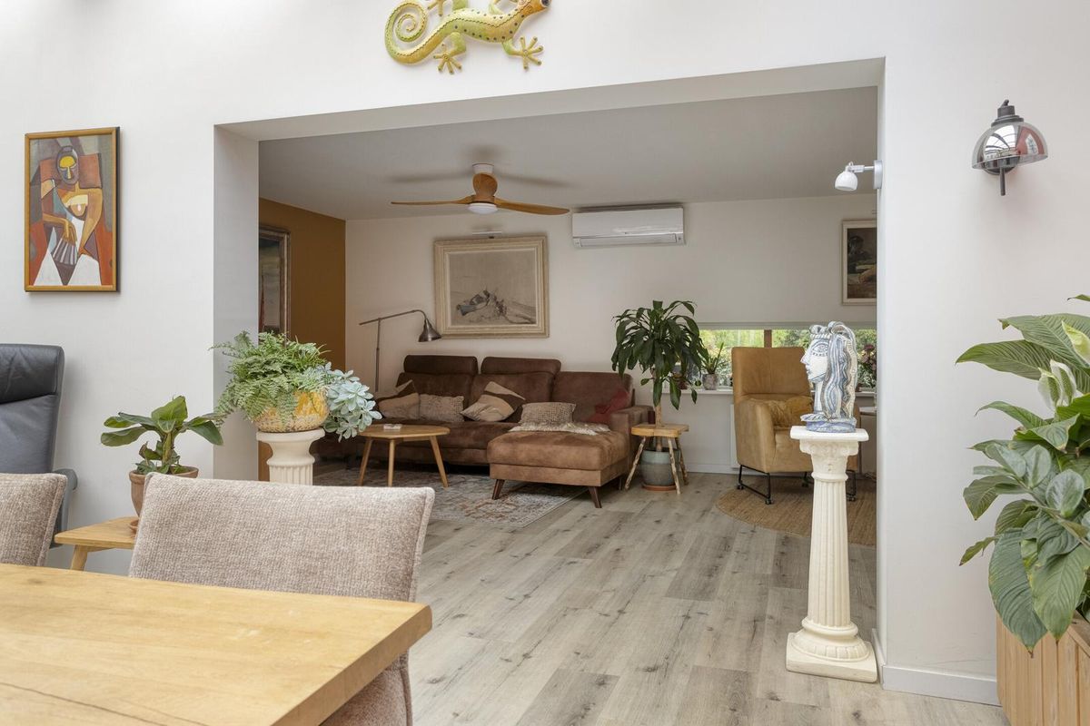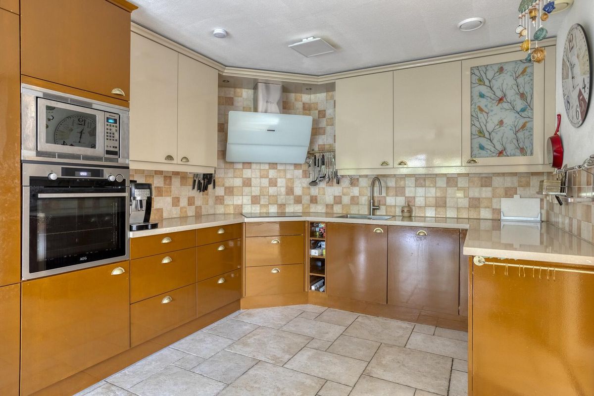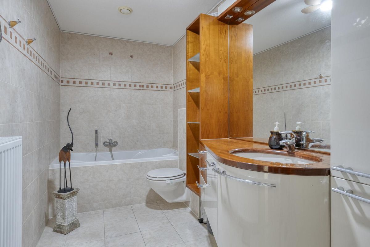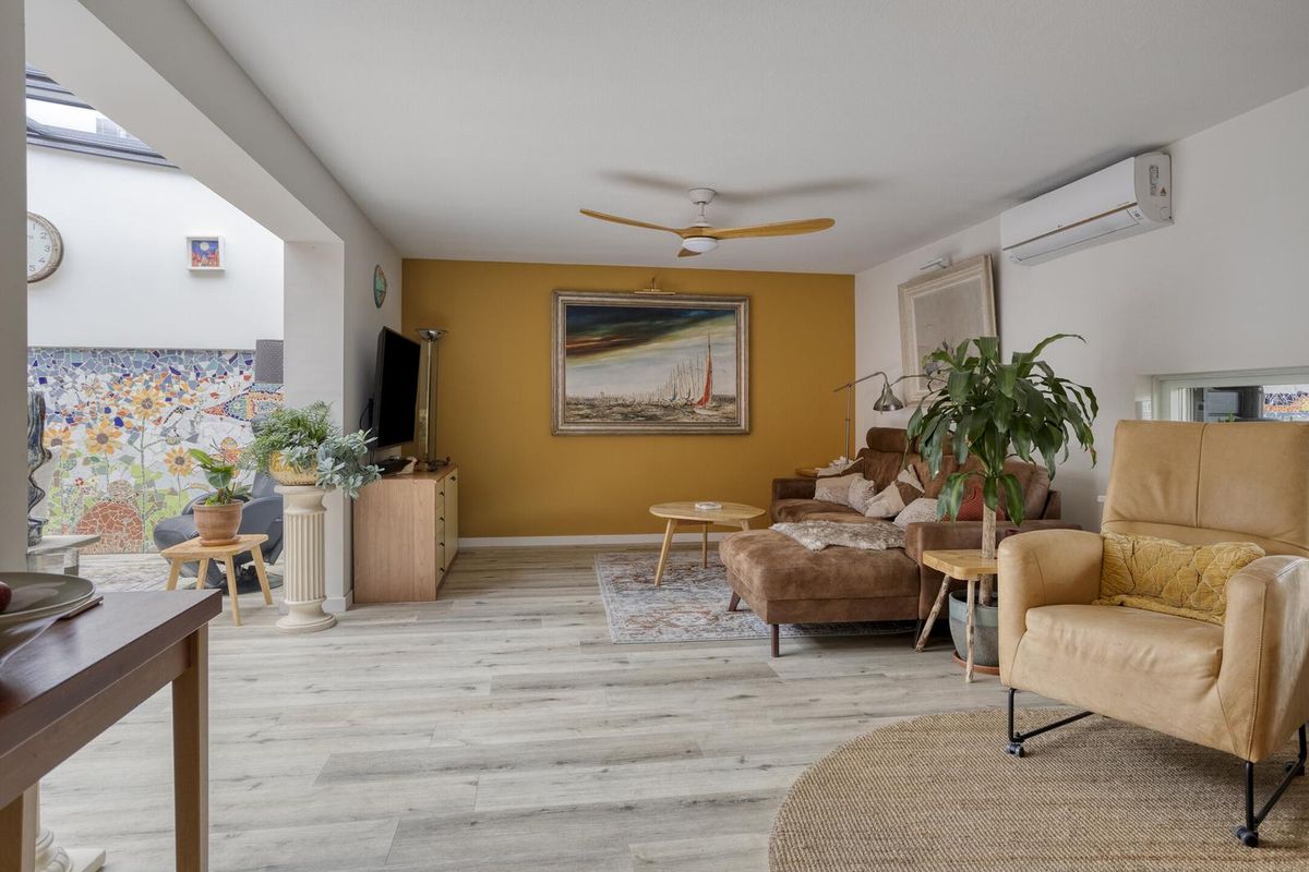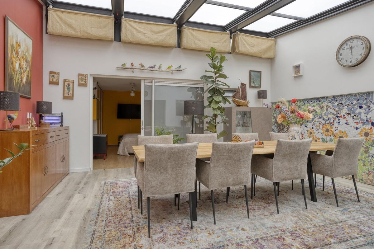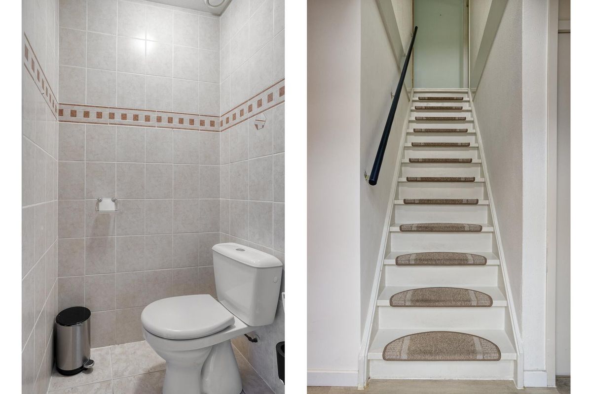 In het hart van het huis vinden we de sfeervolle eetkamer/atrium (voorheen patio), een heerlijke plek met ruimte voor een grote eettafel (8 personen) en bijvoorbeeld een servieskast. Dankzij het glazen dak valt hier prachtig daglicht binnen, hier wordt elke maaltijd een moment om van te genieten. Aansluitend loop je door naar het zitgedeelte, compleet met airco, ruimte voor een fijne zithoek en extra fauteuils. De gesloten keuken in U-opstelling biedt volop kastruimte en werkblad, en is uitgerust met een kookplaat, afzuigkap, magnetron, combi-oven, vaatwasser én plek voor een knusse ontbijttafel. Via de keuken heb je direct toegang tot de tuin. Op deze verdieping vind je ook een praktische bijkeuken, voorzien van aansluitingen voor de wasmachine en droger. Vanuit deze ruimte heb je toegang tot een extra kamer die zich perfect leent als thuiswerkplek, hobbyruimte of bijvoorbeeld een rustige studeerkamer. Daarnaast is er nog een extra berging, zowel van binnenuit als via de buitenzijde bereikbaar, ideaal voor het stallen van fietsen, seizoensspullen of andere opslag. Deze slimme indeling maakt het huis niet alleen comfortabel, maar ook verrassend functioneel.