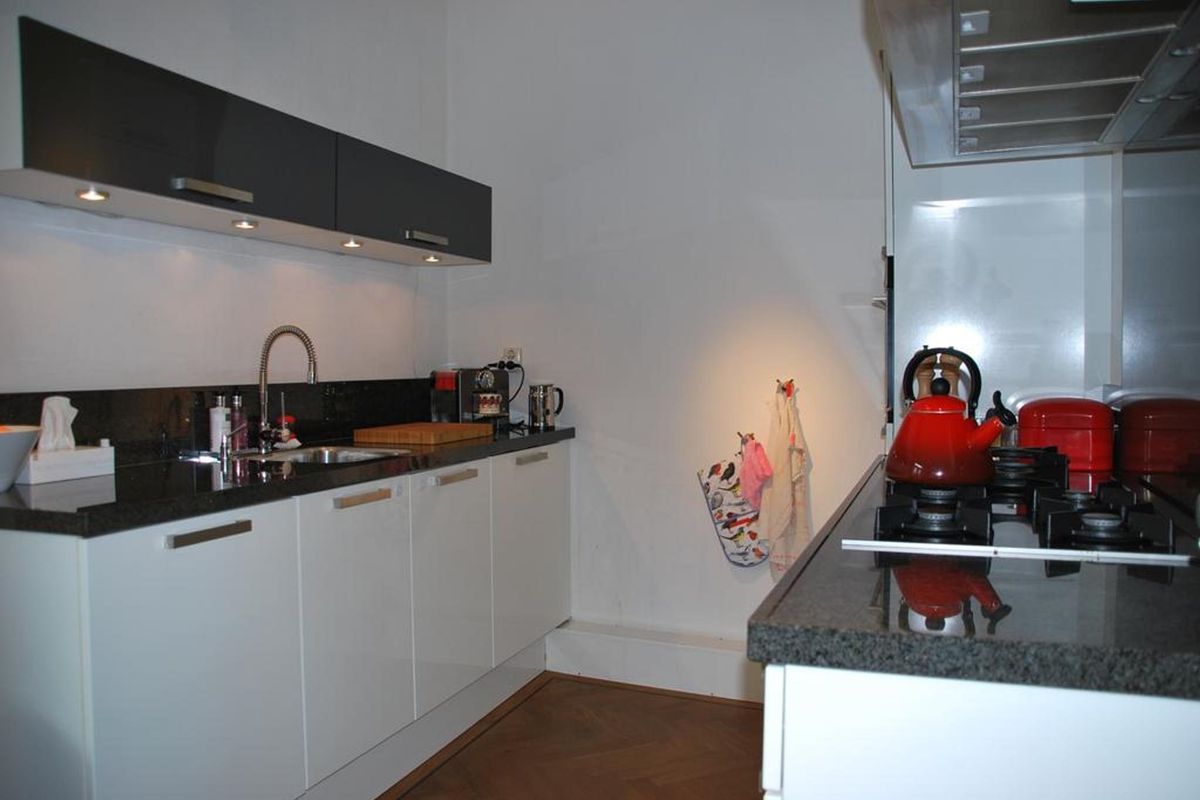 Layout: entrance apartment complex through video intercom, elevator and stairs to 1st floor, hall and walk through to the large terrace (9m x 3m), entrance home, spacious hall with toilet and meter cupboard, stairs to 2nd floor, L-shaped living room with open kitchen (with various built-in appliances), spacious living room (40 m 2) with high ceiling (2.8 m high) and herringbone floor.