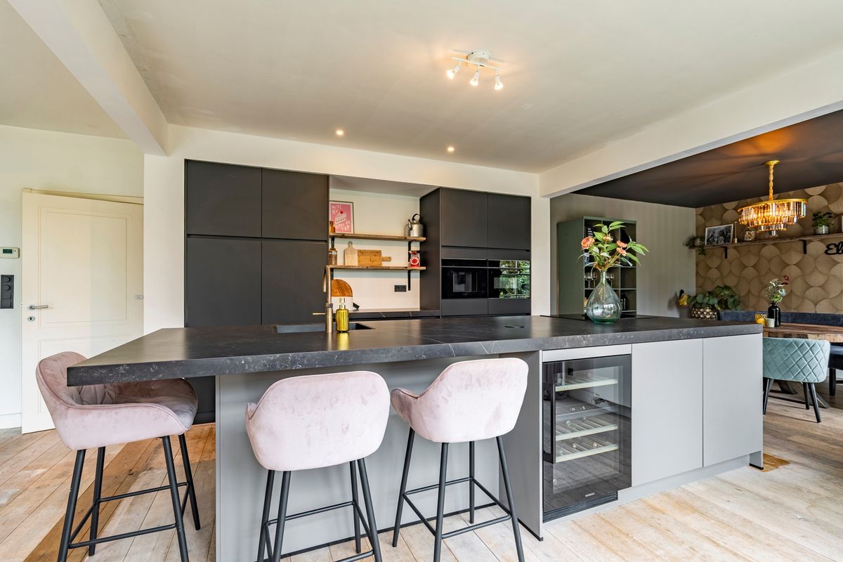 De keuken is o.a. voorzien van een kookeiland met Bora inductiekookplaat met afzuiging, een Quooker, koelkast, diepvries, magnetron, oven en vaatwasser. ( allen Siemens)