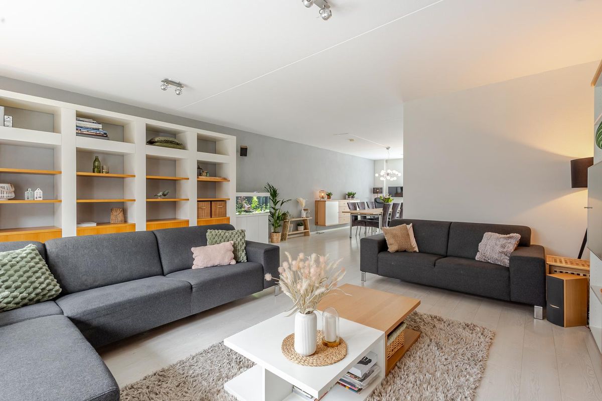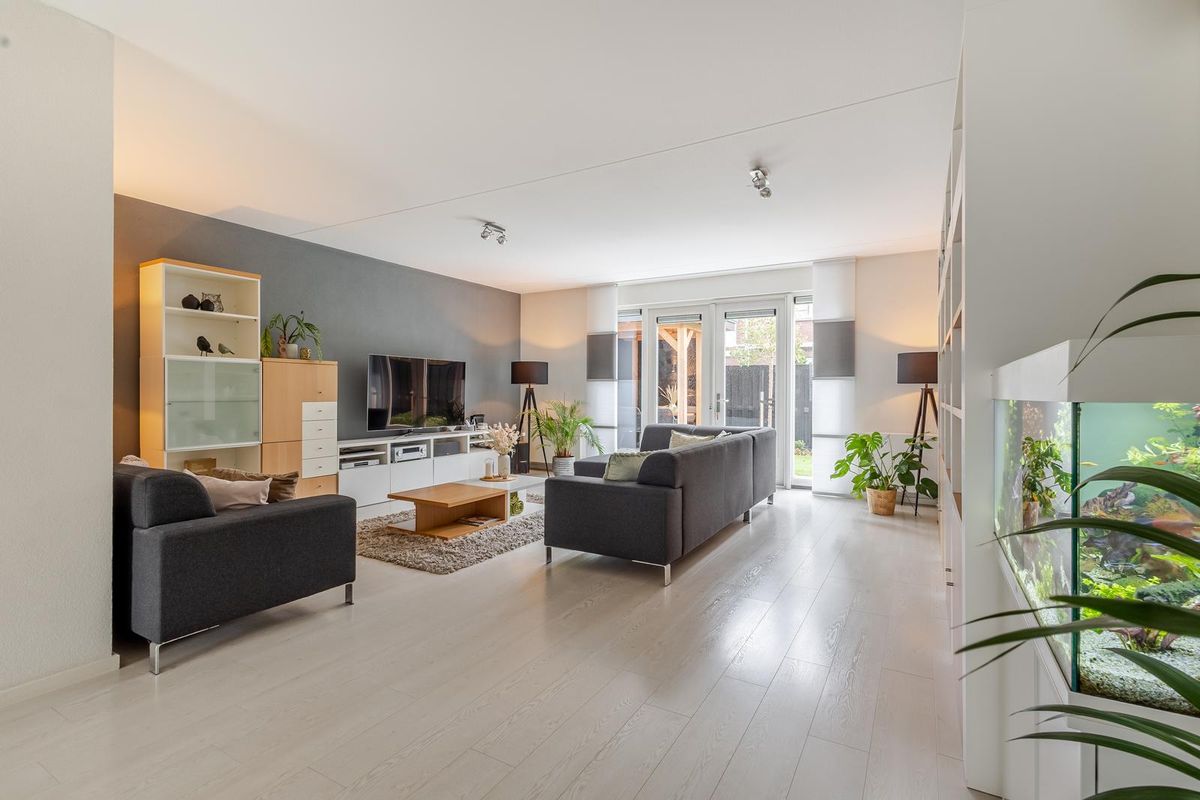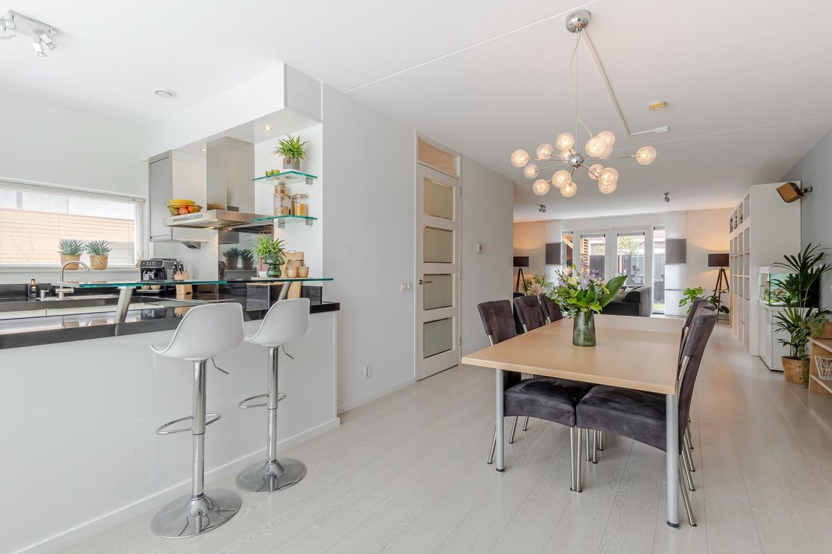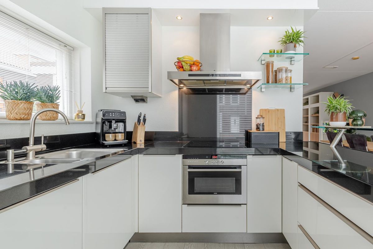 De begane grond biedt een ruime en praktische indeling met een open keuken die naadloos aansluit op de eet- en woonkamer. De woning is tijdens de bouw direct 2 meter uitgebouwd, wat zorgt voor extra leefruimte en een lichte, open sfeer. De tijdloze keuken is gelegen aan de voorzijde van de woning, is van alle gemakken voorzien en biedt genoeg ruimte voor een eetbar of een grote eettafel. De fikse raampartij zorgt voor heel veel lichtinval.