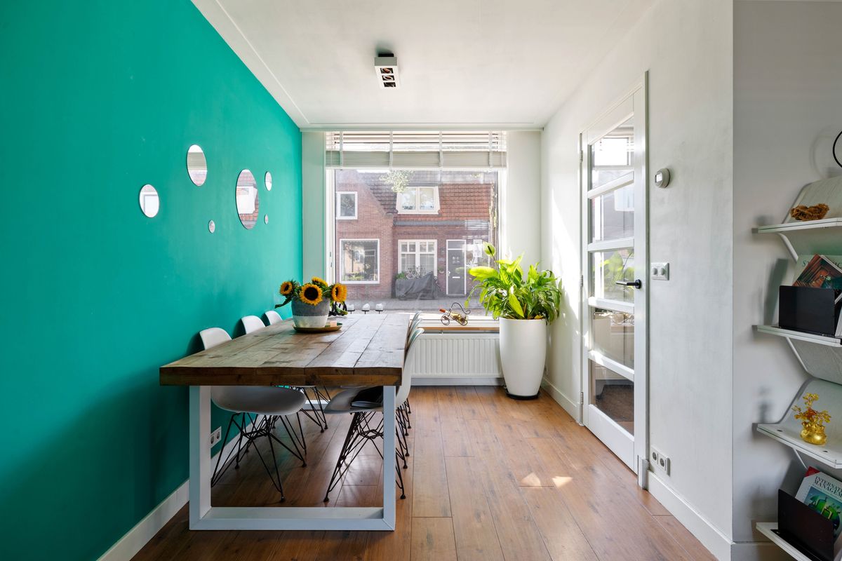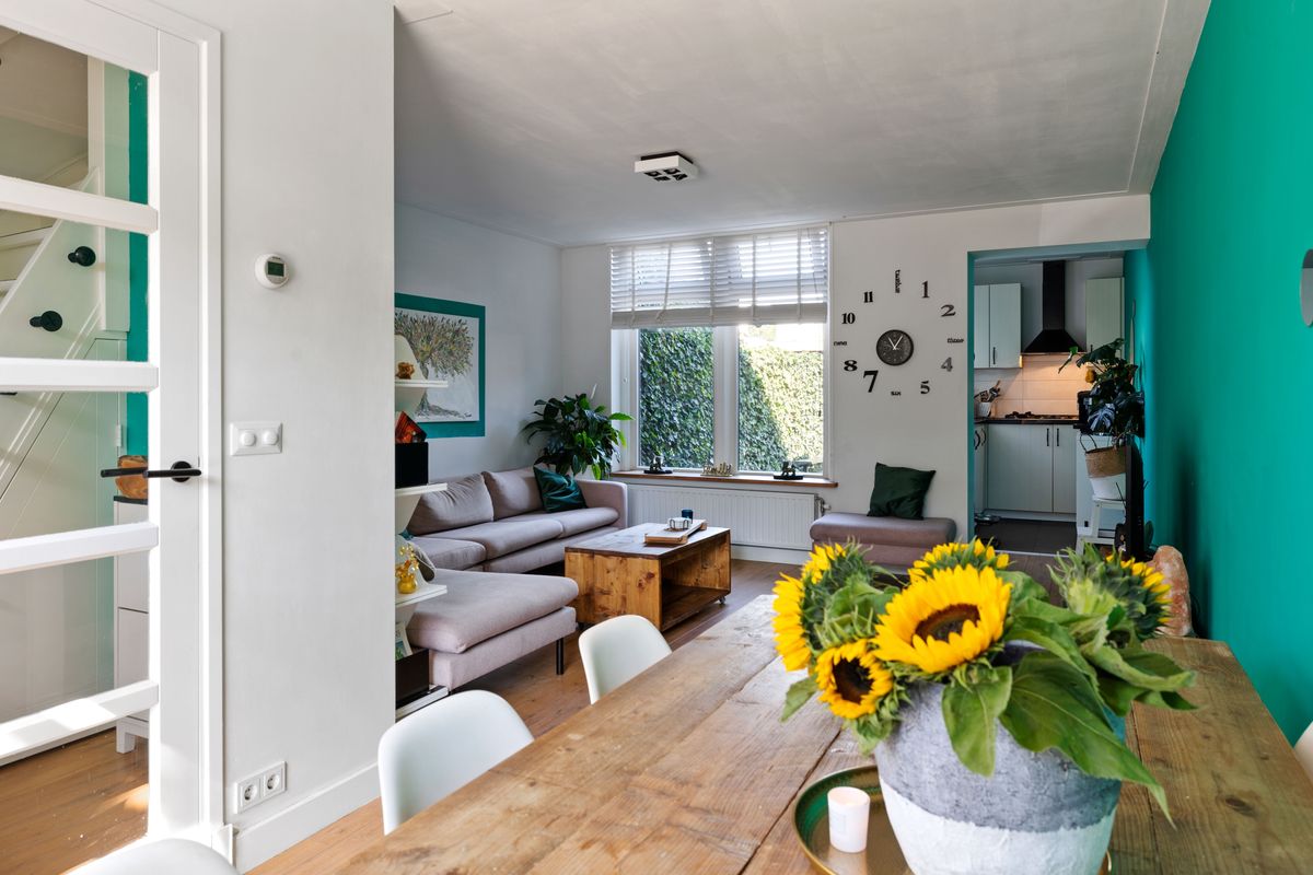 De woning heeft een entree met hal, toilet en trapopgang. Vanuit de hal is er toegang tot de woonkamer met grote raampartijen en ruimte voor een zit- en eethoek. Aansluitend bevindt zich de keuken, uitgevoerd met een gaskookplaat, afzuigkap en diverse opbergkasten. Vanuit de keuken is er toegang tot de achtertuin.