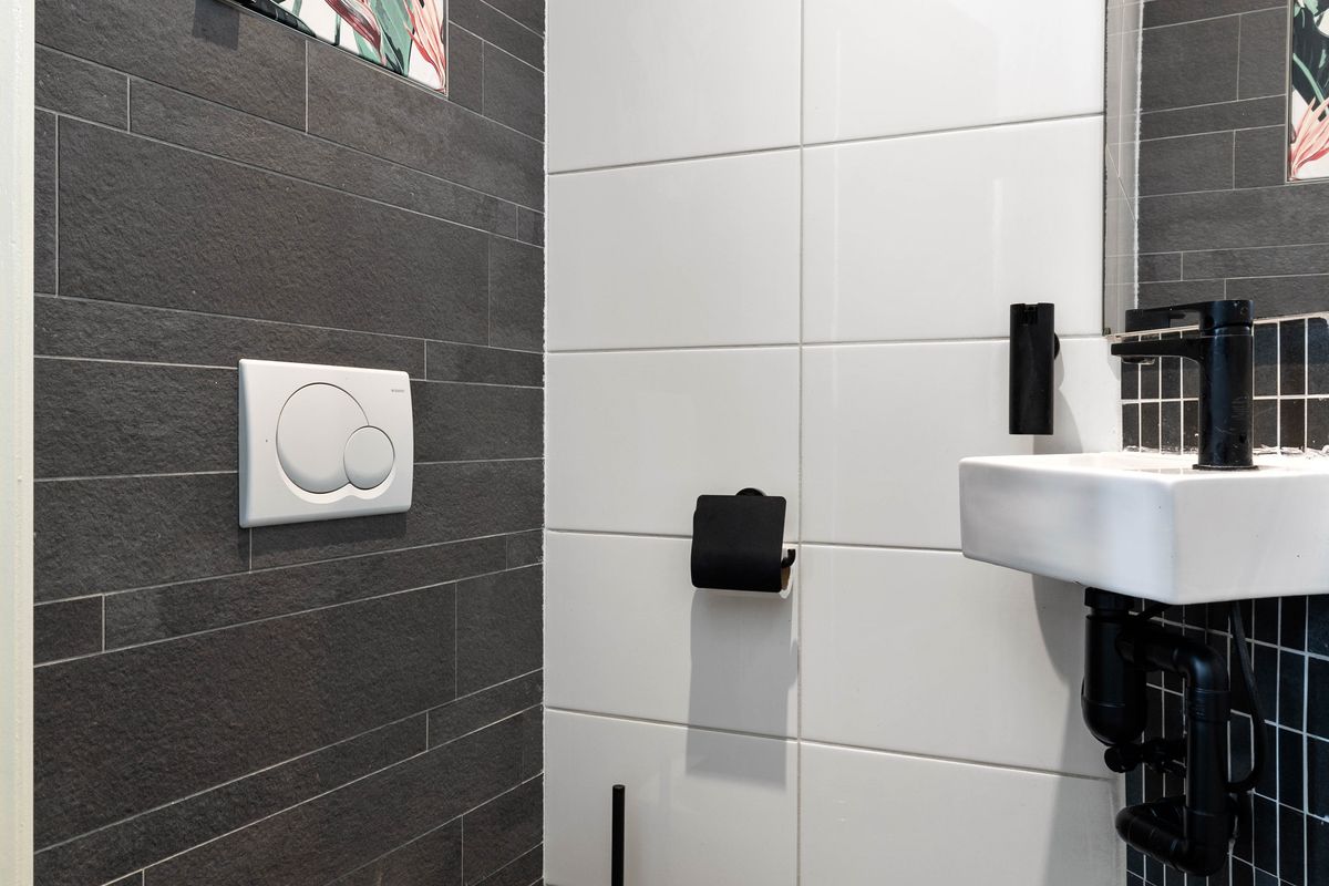 Op de eerste verdieping bevinden zich twee slaapkamers van goed formaat, een moderne badkamer met inloopdouche, wastafelmeubel en toilet, en een aparte waskamer/berging met aansluiting voor wasmachine en droger.