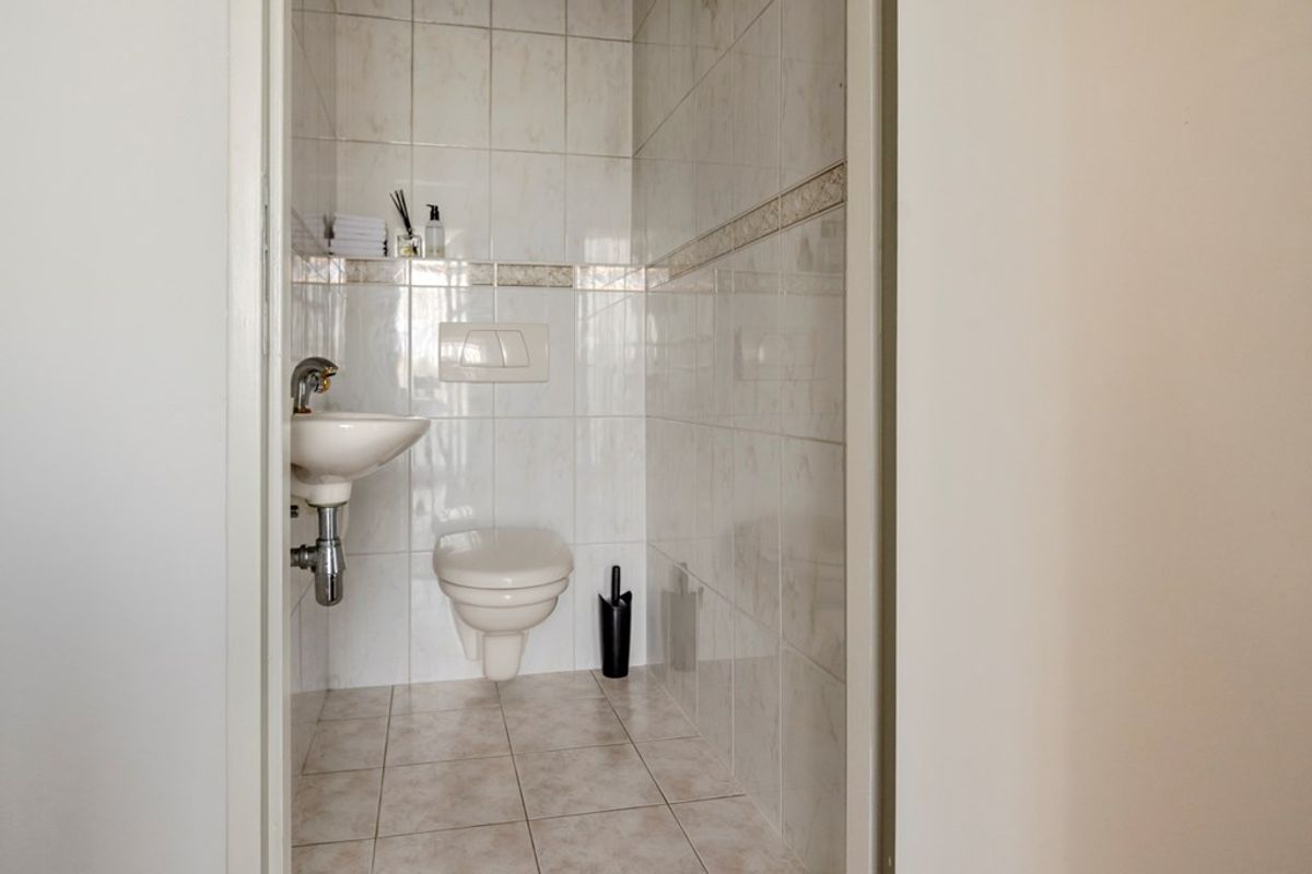 Op de begane grond tref je de entree naar het appartement. Je komt hier in de hal met de meterkast en trapopgang naar de eerste verdieping. Boven valt direct de lange statige gang met houten afwerkvloer op, wat aangeeft hoe ruim dit appartement is. De mooie taatsdeuren geven toegang tot de ruime woonkamer (6.37 x 6.32). Door de grote schuifpui naar het dakterras creëer je hier echt het binnen-buiten gevoel. De halfopen keuken (2.49 x 4.54) bereik je via de woonkamer en is voorzien van extra daglicht door de lichtkoepel. De hoekkeuken is voorzien van diverse inbouwapparatuur zoals 5-pitsgasplaat, koelkast, vaatwasser, Quooker en veel kastruimte. In de stookruimte (1.43 x 1.64) welke via de keuken te bereiken is hangt de cv-ketel en is de opstelplaats van de wasmachine en droger. Via de gang met garderobe kom je bij alle andere vertrekken. Het volledig betegelde toilet is voorzien van een wandcloset en fonteintje. De luxe badkamer (2.75 x 2.74) is ook volledig betegeld en voorzien van een wastafelmeubel, ligbad, tweede toilet en douchecabine. De twee slaapkamers (3.99 x 4.52 en 2.74 x 5.34) aan de voorzijde zijn ruim opgezet en hebben beide een schuifpui voor toegang tot het balkon (13.09 x 1.14). Eén slaapkamer is voorzien van een vaste kast. De hoofdslaapkamer (3.52 x 3.76) aan de achterzijde heeft een vaste kast, een eigen badkamer (2.45 x 1.15) met inloopdouche en wastafel. Vanuit deze slaapkamer stap je bovendien via de schuifpui zo het zonnige dakterras op. De gang geeft ook nog toegang tot de provisiekast (2.45 x 1.32) welke je ook perfect voor berging kunt gebruiken.