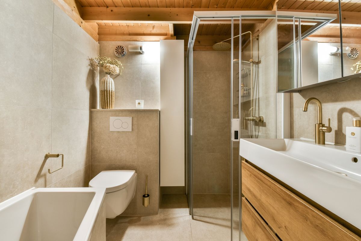 * Luxe badkamer met ligbad, inloopdouche, dubbele wastafel en toilet