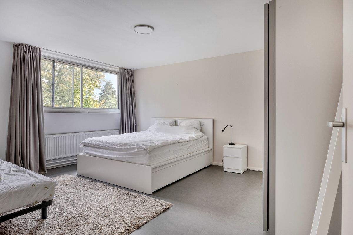 De slaapkamer in het souterrain biedt voldoende ruimte voor een bed, bureau en kast. De nette afwerking en de goede staat maken dit een comfortabele en rustige plek.