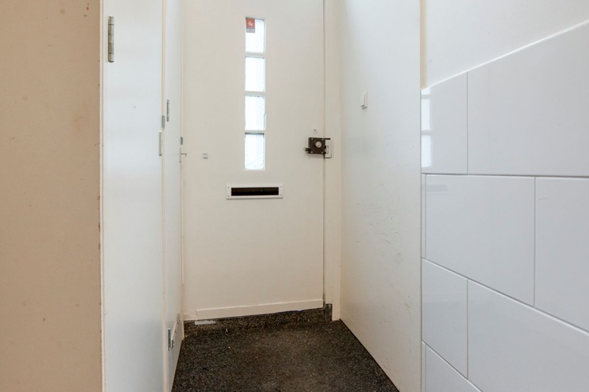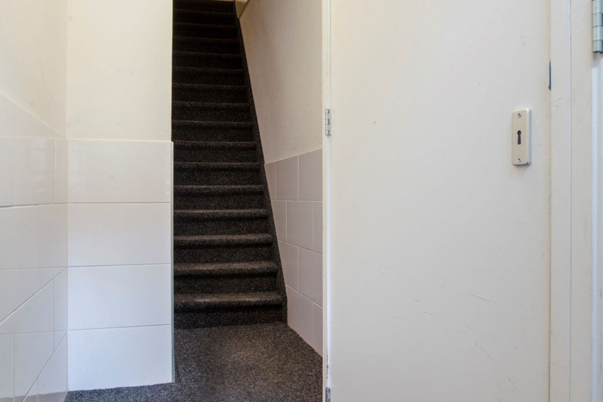 Afgesloten entree met brievenbussen en trapopgang naar een ruime overloop op de eerste etage. Hier bevindt zich de entree van het appartement.