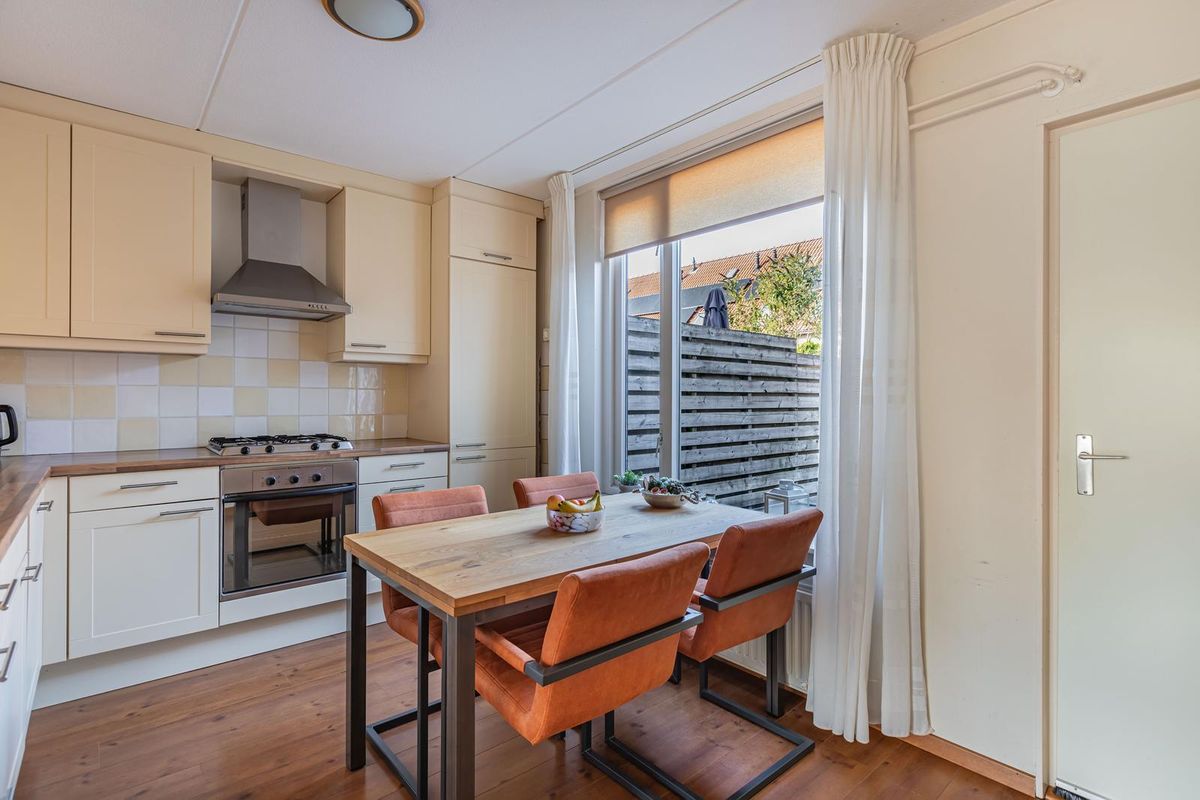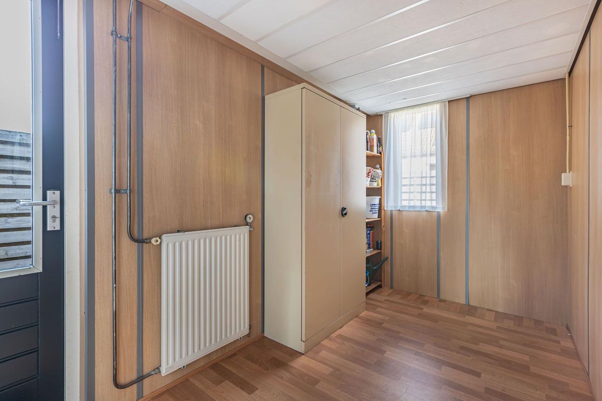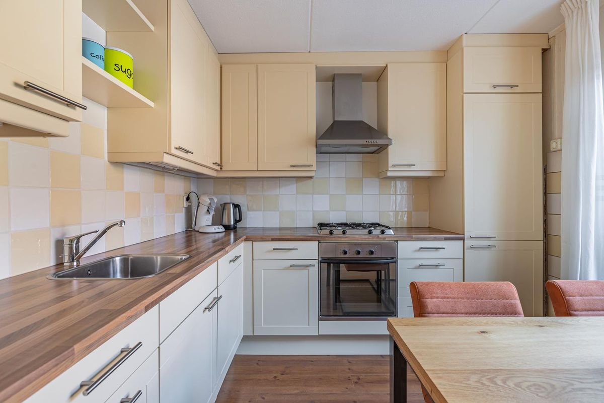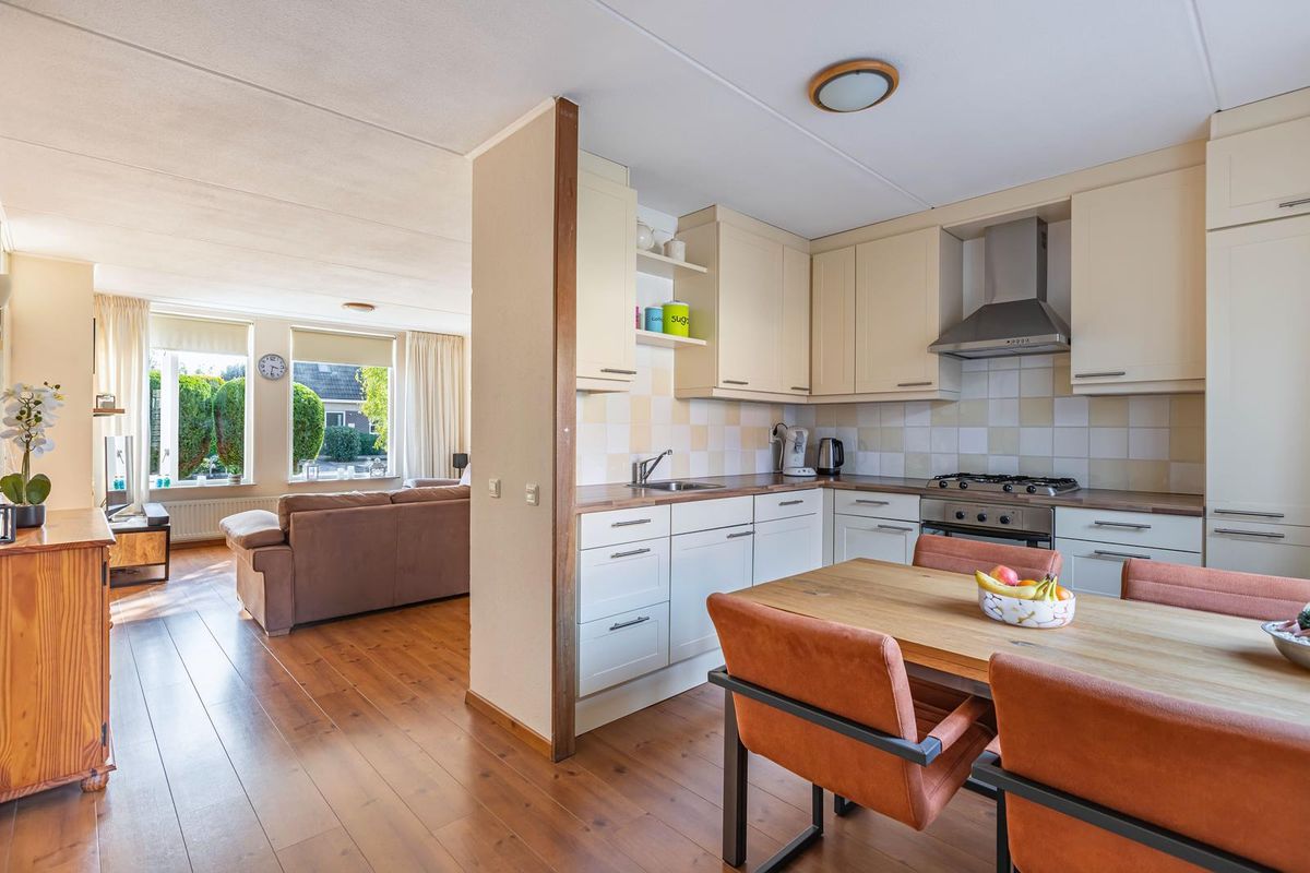 Via de entree/hal bereikt u de woonkamer. De woonkamer is voorzien van een laminaat vloer en biedt een doorgang naar de open keuken. De nette open keukenopstelling is voorzien van diverse inbouwapparatuur en de ruimte leidt weer naar de bijkeuken. Deze ruimte is voorzien van de wasmachine-en droger aansluiting en is ook netjes afgewerkt. De deur naar de achtertuin vindt u ook in deze ruimte.
