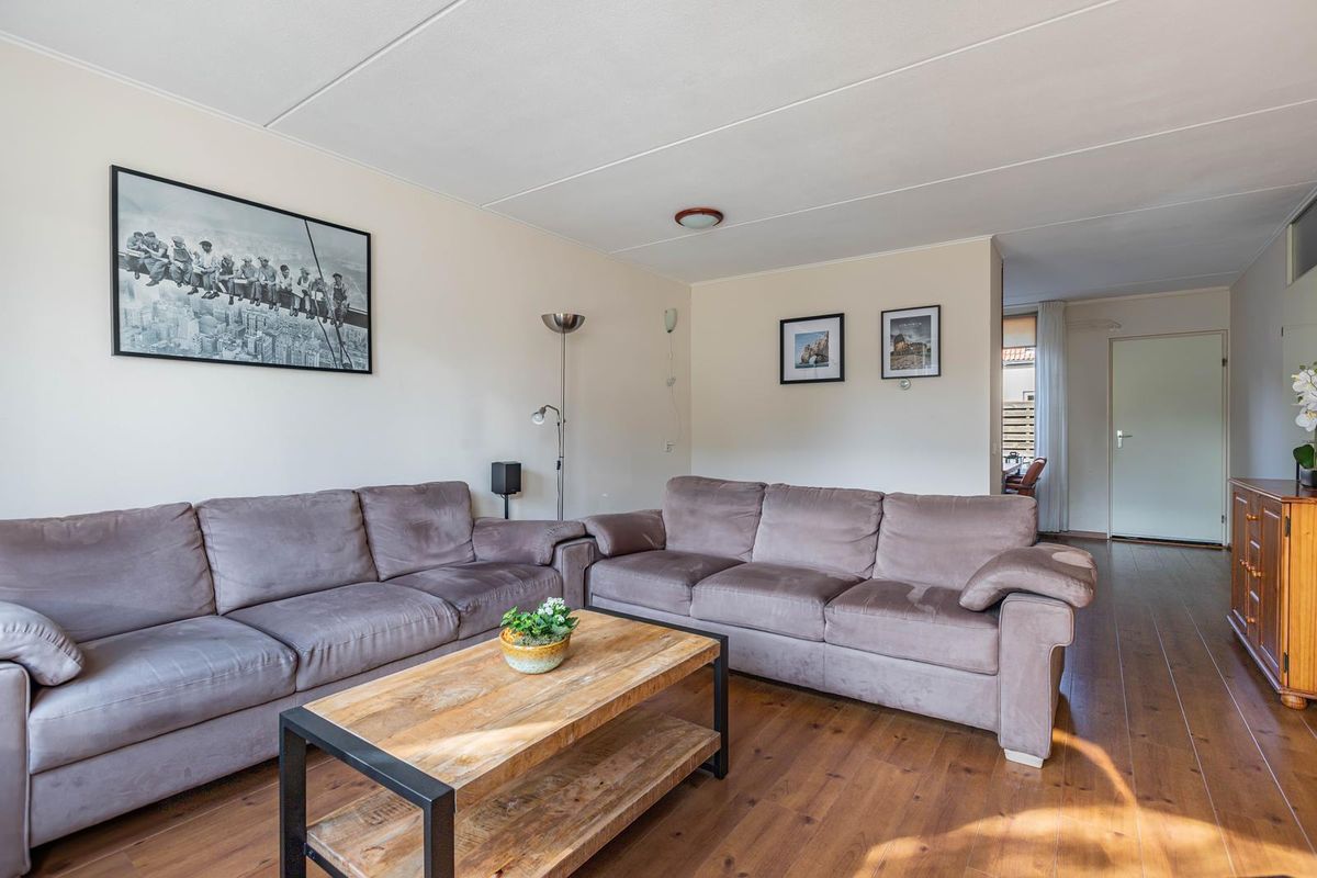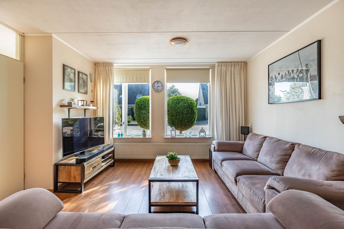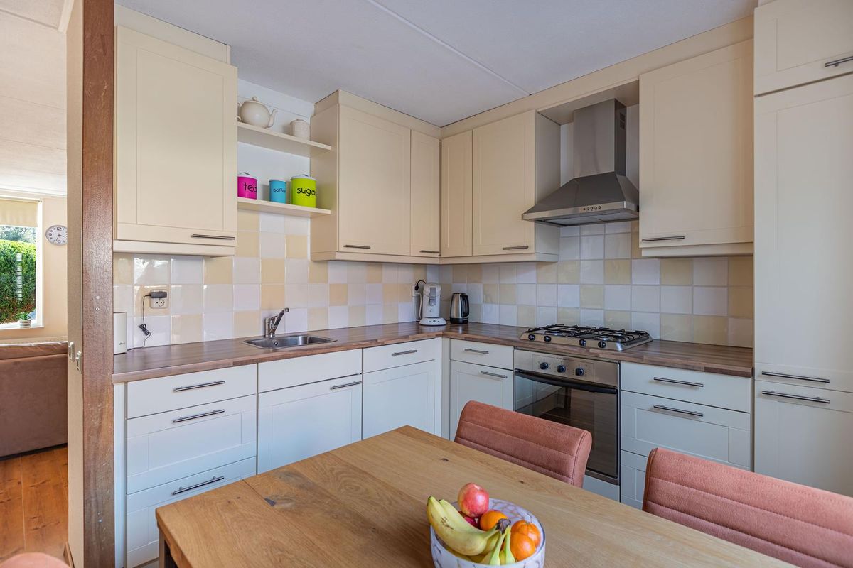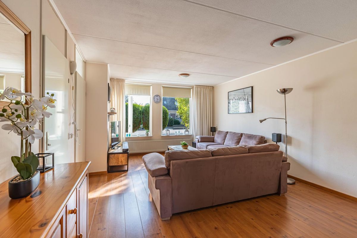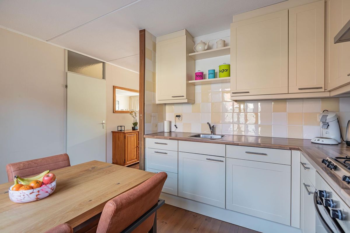 Via de entree/hal bereikt u de woonkamer. De woonkamer is voorzien van een laminaat vloer en biedt een doorgang naar de open keuken. De nette open keukenopstelling is voorzien van diverse inbouwapparatuur en de ruimte leidt weer naar de bijkeuken. Deze ruimte is voorzien van de wasmachine-en droger aansluiting en is ook netjes afgewerkt. De deur naar de achtertuin vindt u ook in deze ruimte.