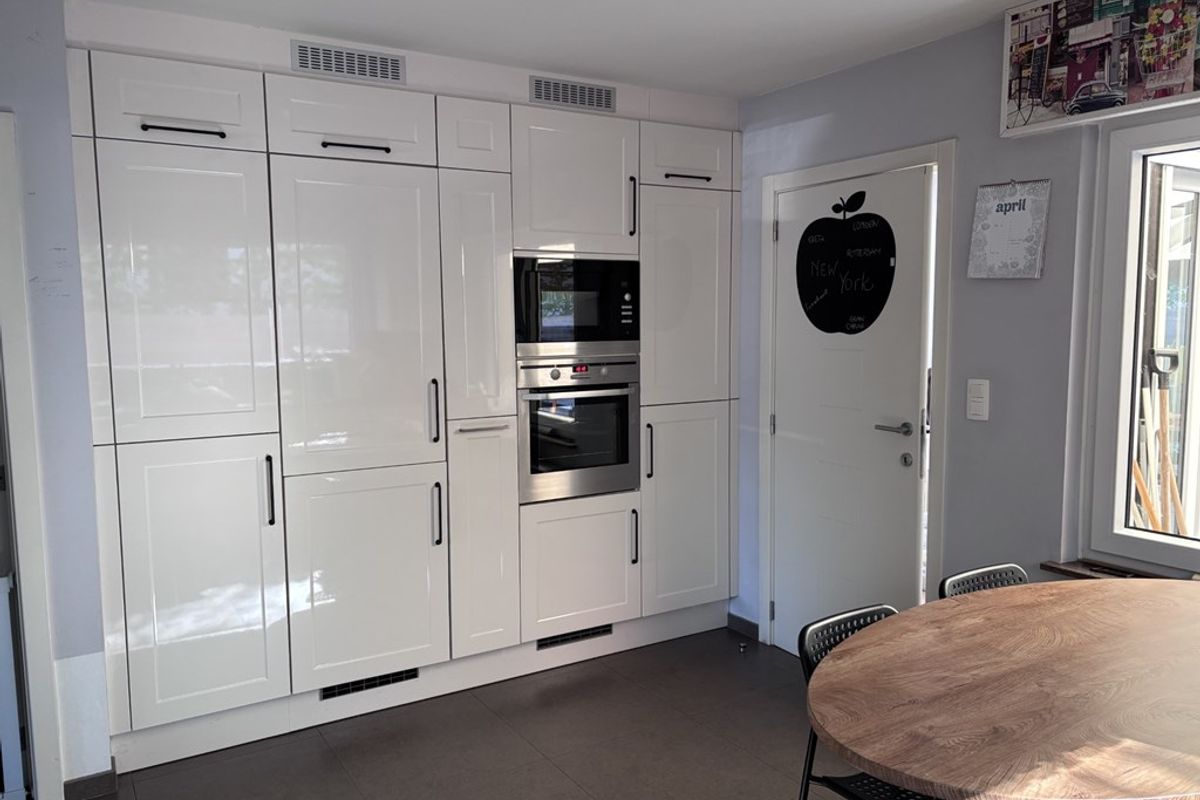 De gezellige leefruimte is ingedeeld in een zit en eetgedeelte en biedt veel lichtinval. Aansluitend bevindt zich de moderne keuken, voorzien van alle nodige inbouwapparatuur zoals een inductiekookplaat, vaatwasser, combi koelkast en vriezer, oven en magnetron.