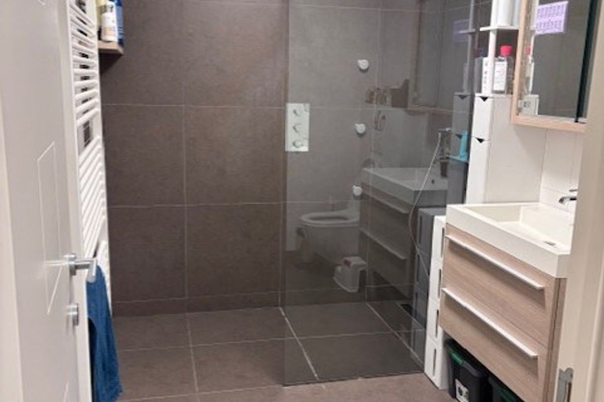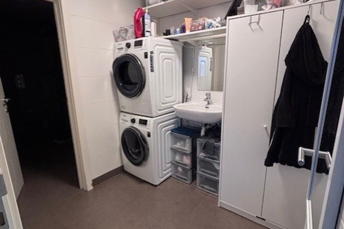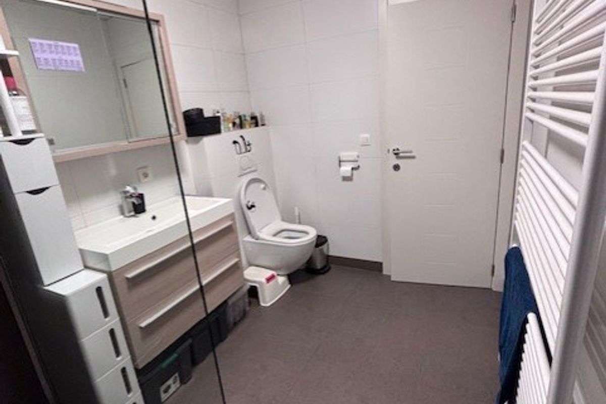 Verder vind je op de begane grond een handige wasruimte met aansluitingen voor wasmachine en droger, evenals een nette badkamer met inloopdouche met regendouche, toilet en dubbele wastafel.