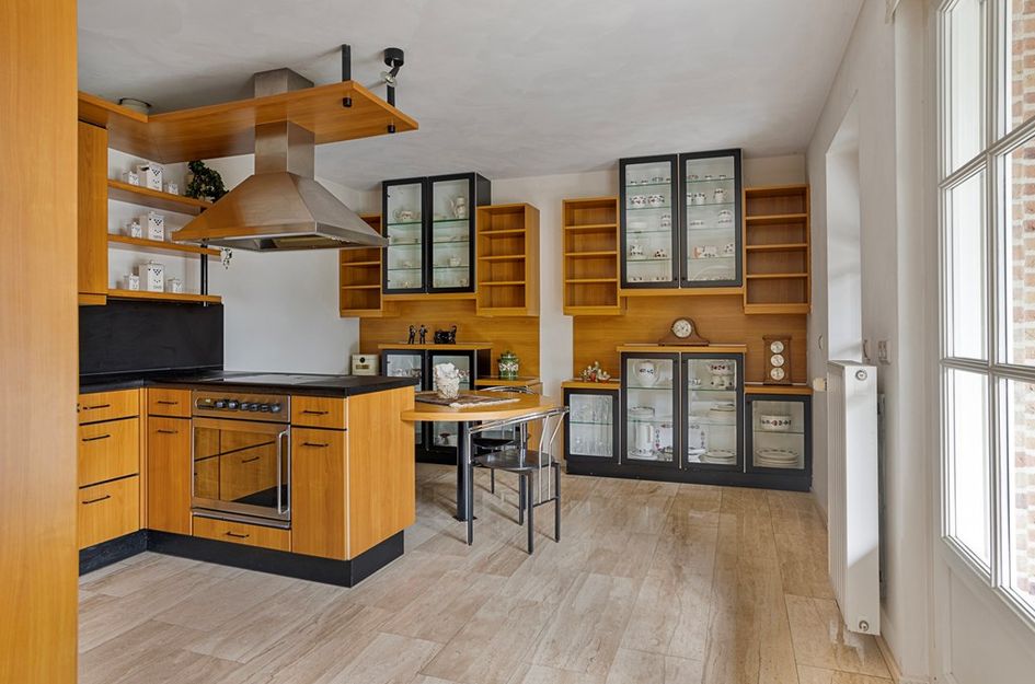 De bijkeuken is de verbinding tot de veranda, de keuken en de kantoorruimte.