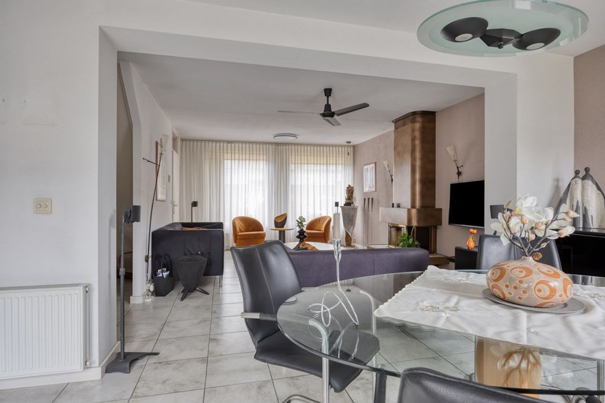 Aansluitend het eetkamergedeelte met dubbele deur naar de achtertuin voor optimaal tuincontact.