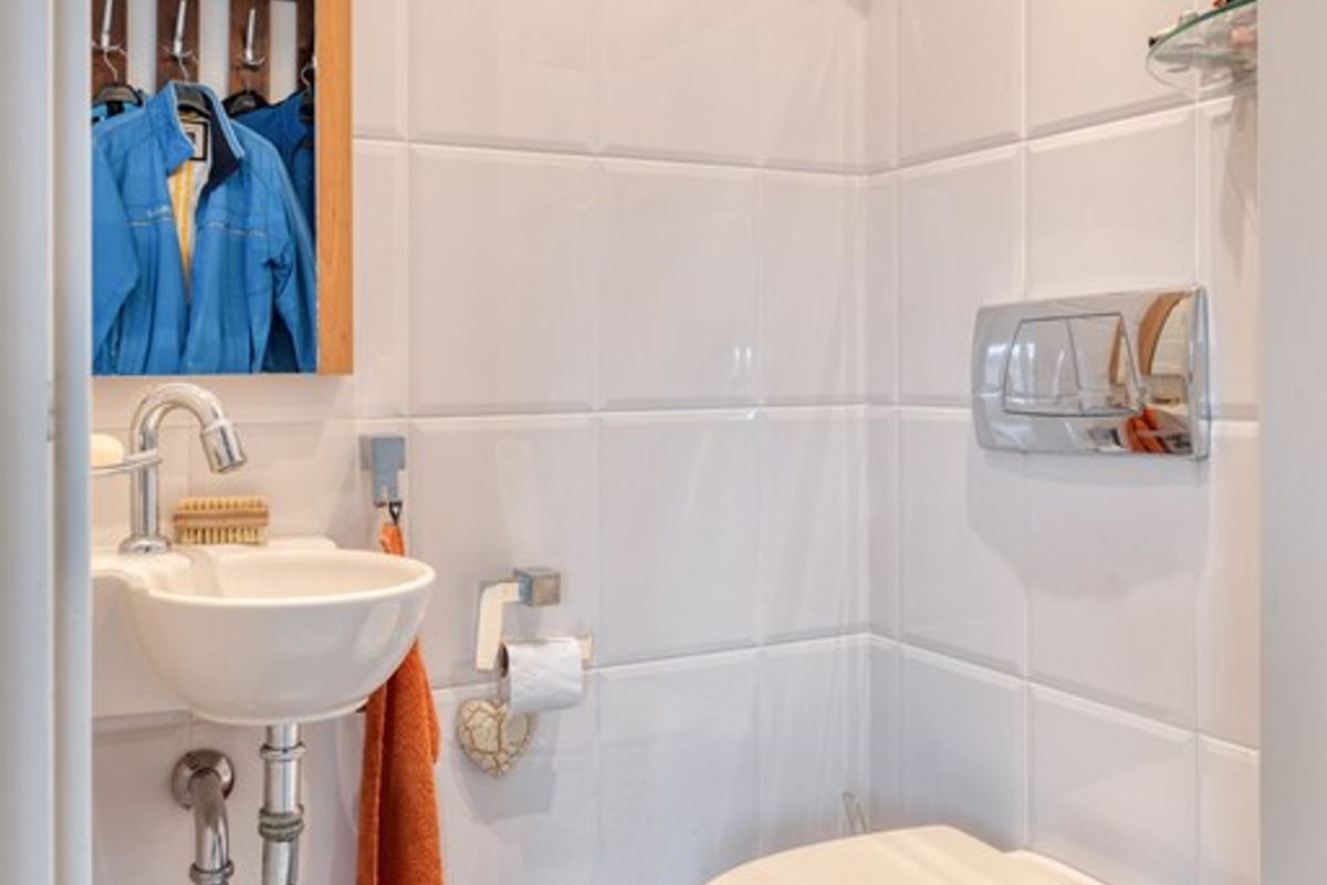 Toiletruimte met zwevend toilet en fonteintje.