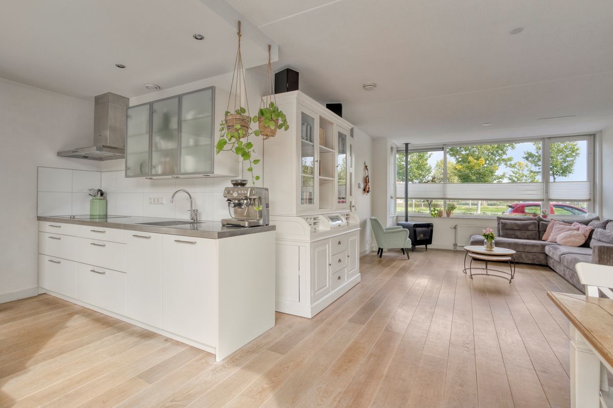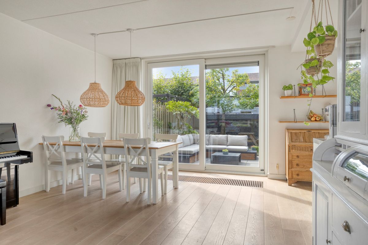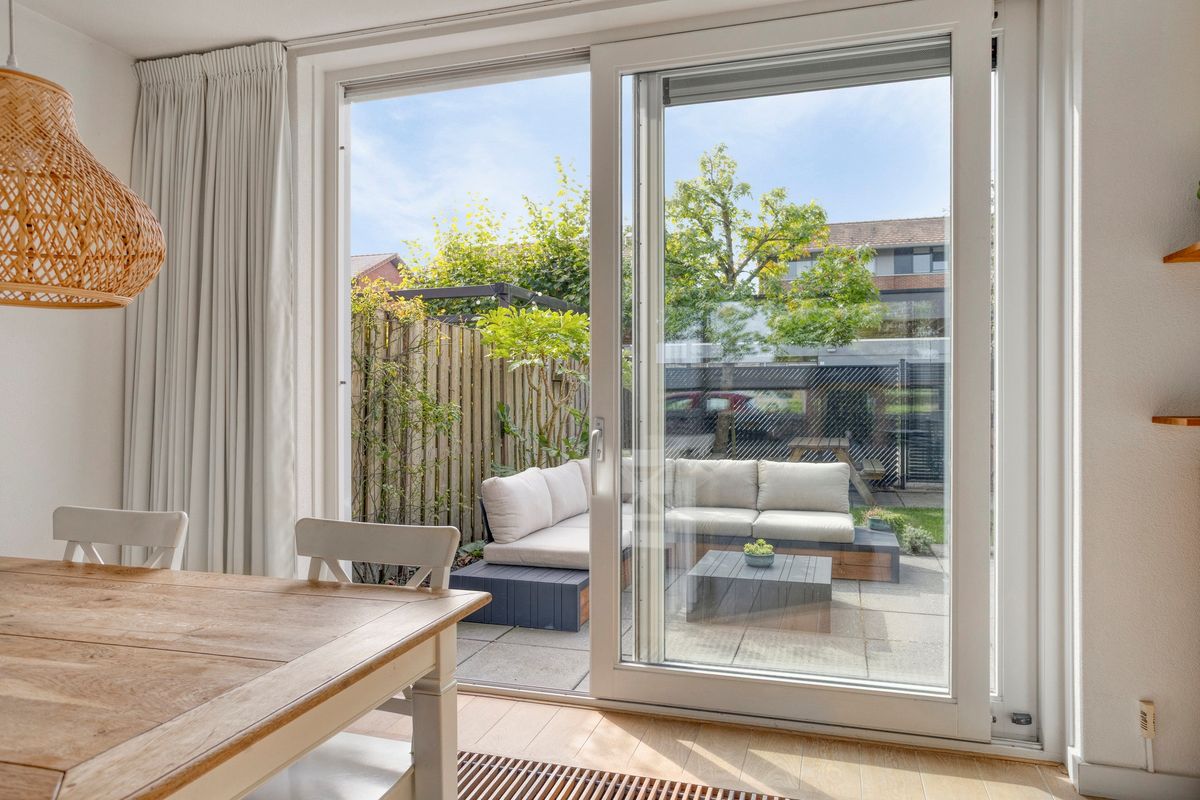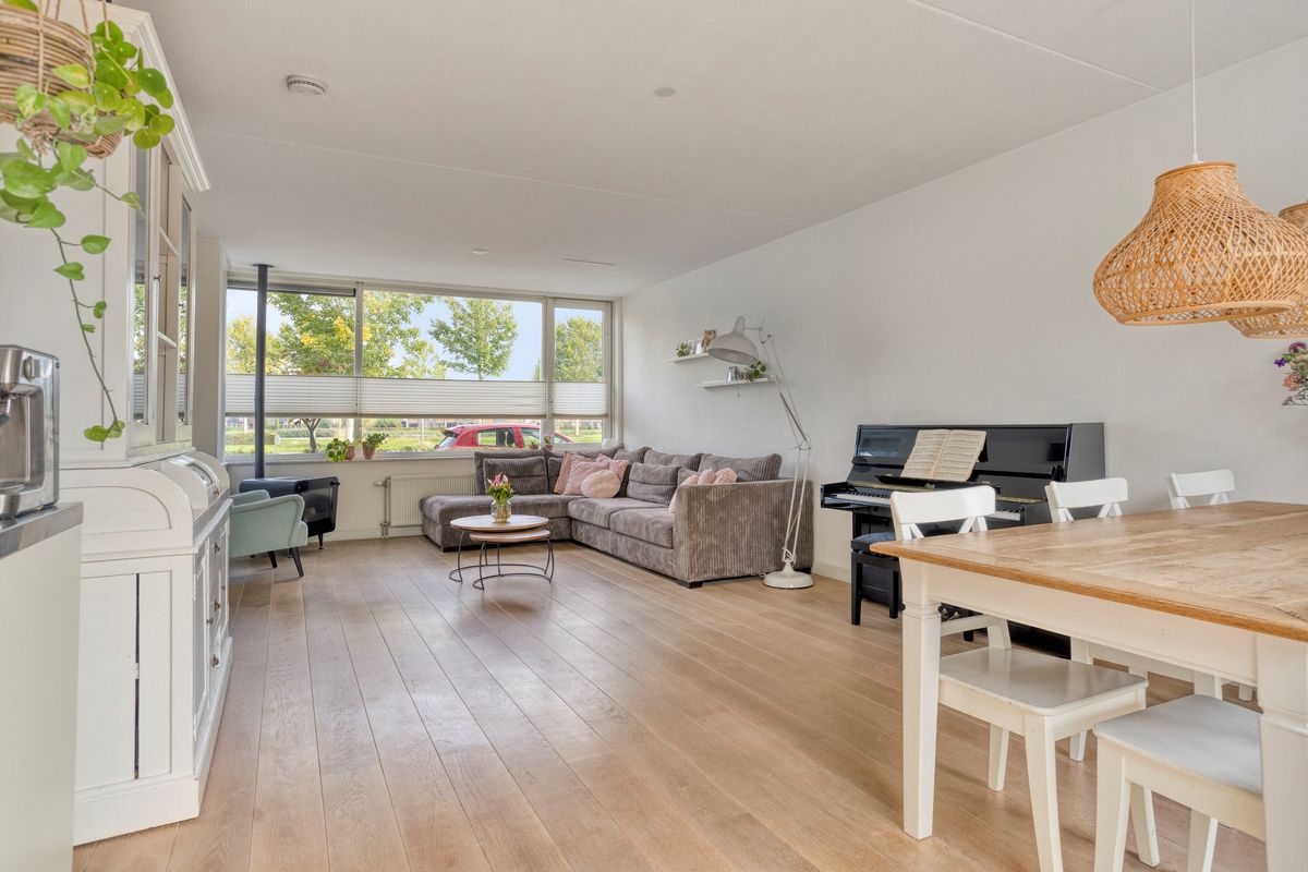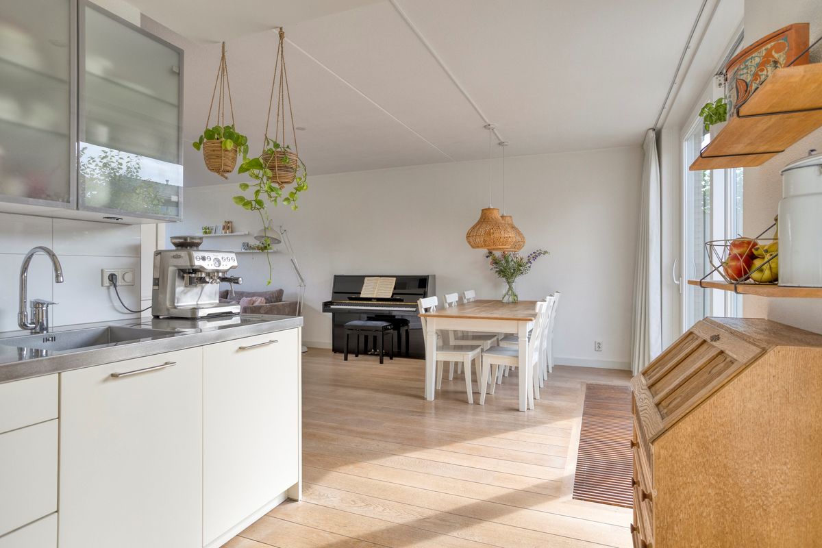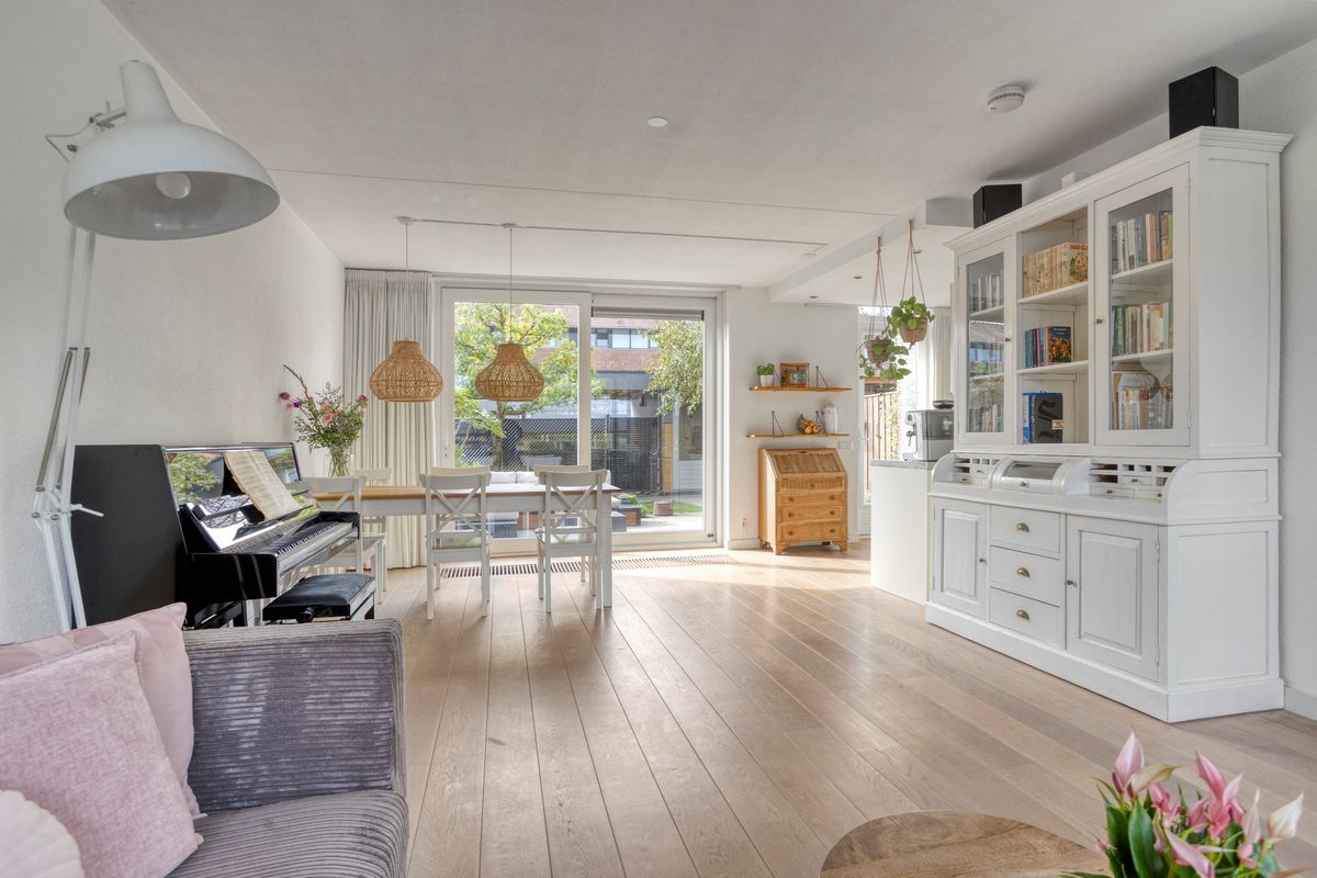 De woonkamer is ruim opgezet, met meer dan genoeg plek voor een gezellige zithoek en een royale eettafel. Dankzij de grote ramen en de schuifpui naar de achtertuin baadt deze ruimte altijd in het daglicht. Op een zonnige dag opent u de schuifpui en haalt u buiten eenvoudig naar binnen – dat voelt toch luxe? De royale woonkamer oogt uitnodigend dankzij de grote ramen en het lichte kleurgebruik. De open keuken is van alle gemakken voorzien — koken wordt hier echt een feestje! En met energielabel A en maar liefst twaalf zonnepanelen woont u hier bovendien bijzonder duurzaam en voordelig.