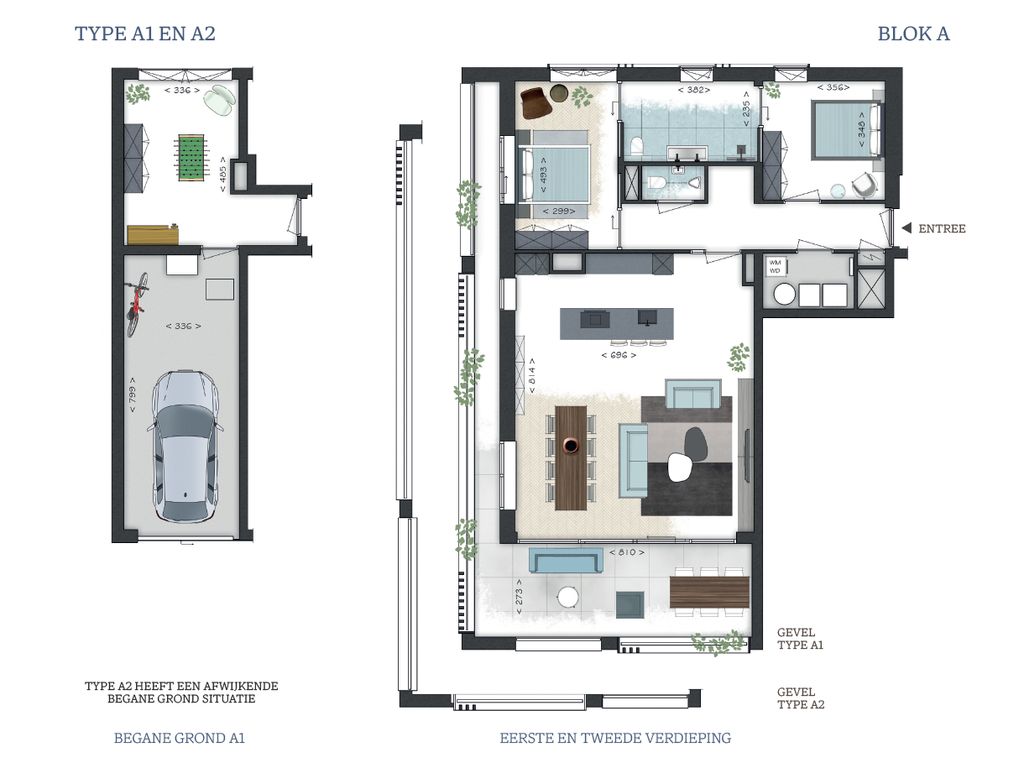 De appartementen van Type A combineren royale leefruimte met praktische indeling en eigentijdse luxe. Officieel een appartement, maar qua gevoel en gebruik eigenlijk een tweelaagse woning.
