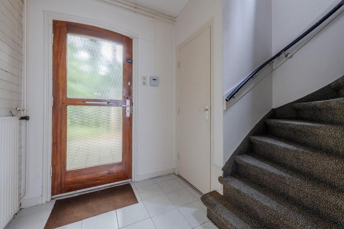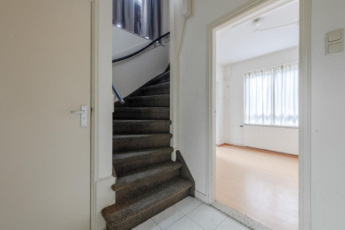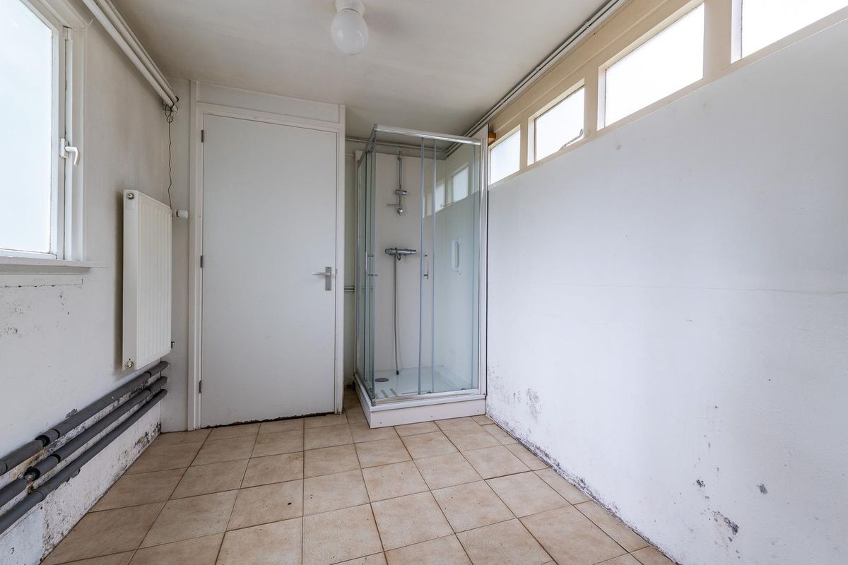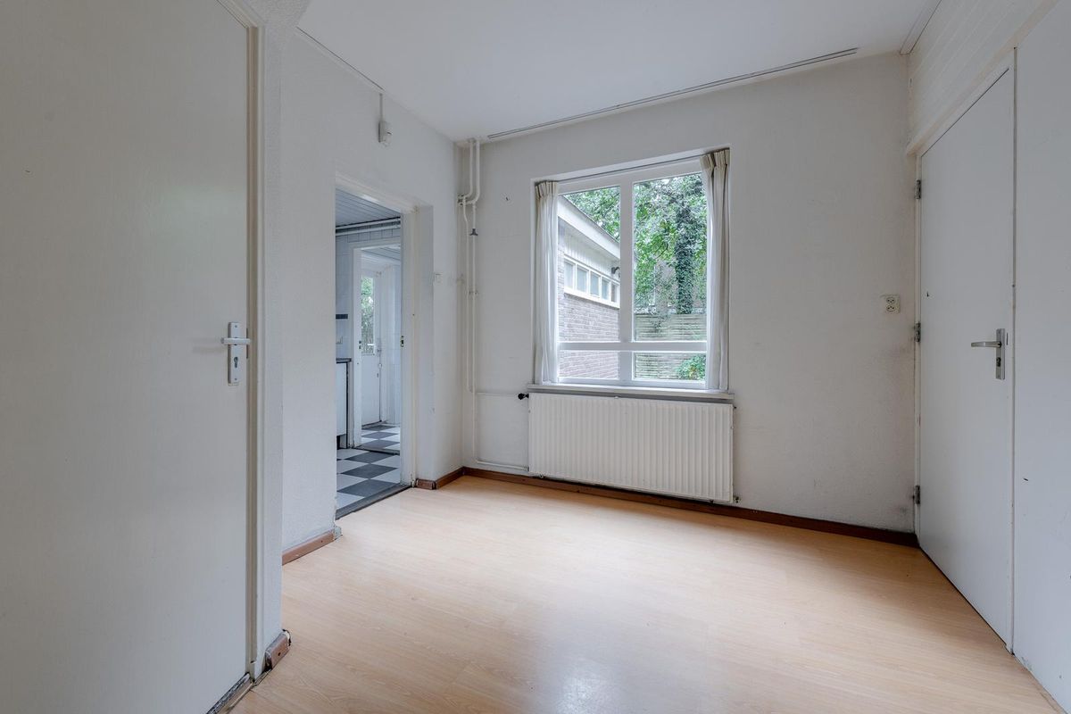 U komt binnen via de hal met toilet en trapopgang. De lichte L-vormige woonkamer is voorzien van openslaande deuren naar de tuin en een tussenwand die de ruimte op een speelse manier indeelt. De dichte keuken is eenvoudig maar functioneel en biedt toegang tot de bijkeuken. Via de bijkeuken bereikt u zowel de tuin als de ruime inpandige stenen schuur, waar ook de CV-ketel zich bevindt.