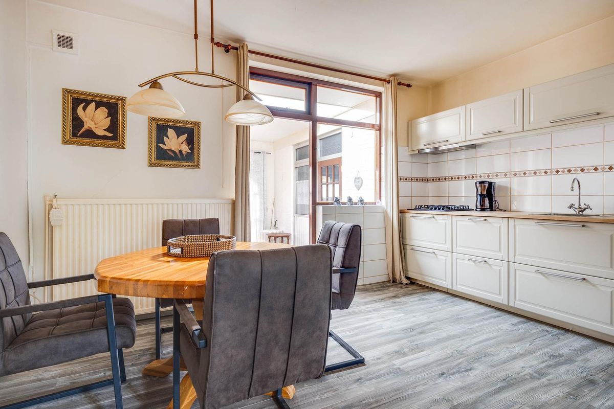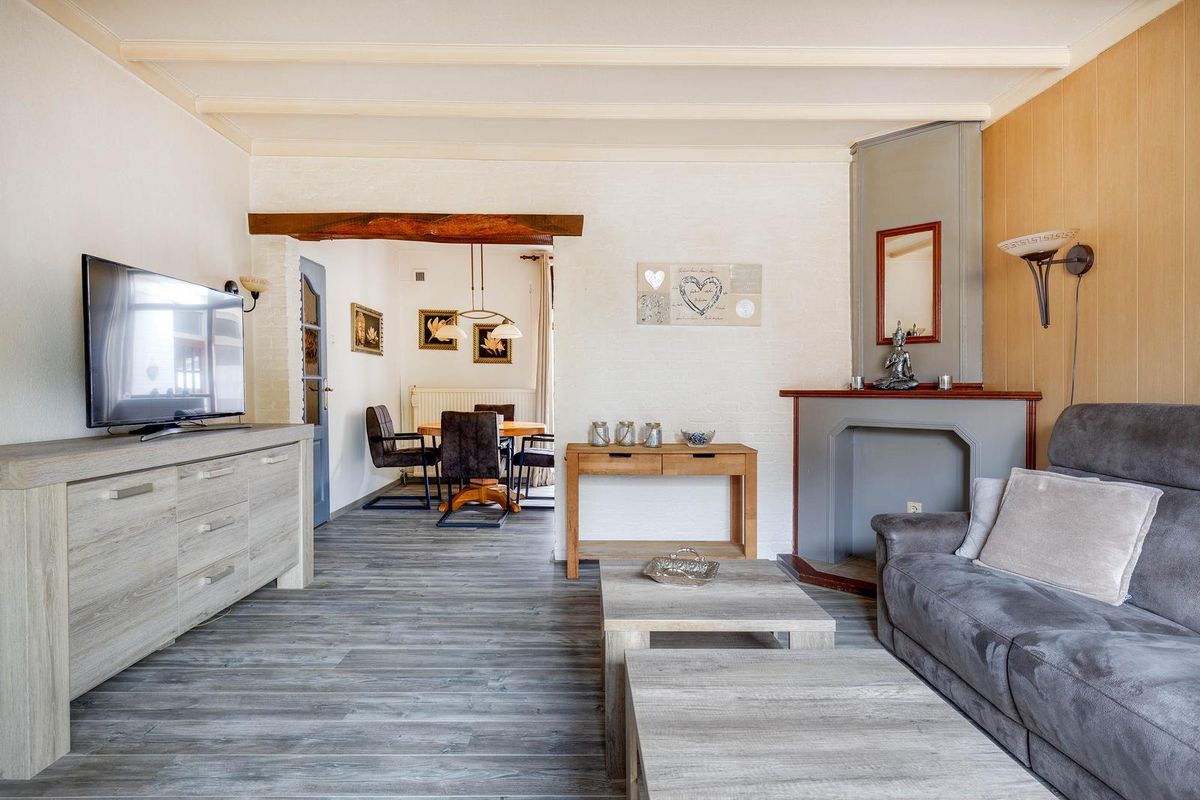 De woonkamer is verdeeld in zitkamer aan de voorzijde en eetkamer/keuken aan de achterzijde. Keuken met installatie (2019) met gaskookplaat, afzuiging en koelkast.
