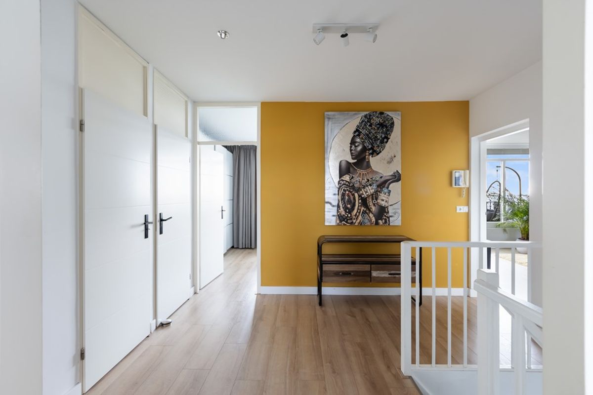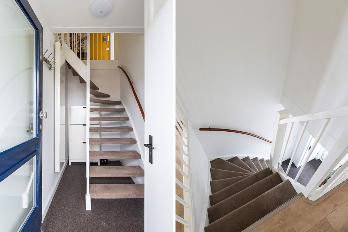 De entree van het appartement bevindt zich op de eerste woonlaag en geeft toegang tot de woning. Hier bevinden zich de meterkast en de trap naar de woonverdieping. Deze opzet maakt het mogelijk om – indien gewenst – een traplift te plaatsen, waardoor de woning ook geschikt kan worden gemaakt voor minder valide bewoners of toekomstbestendig wonen. Hierdoor blijft het appartement aantrekkelijk voor een brede doelgroep, nu én in de toekomst.