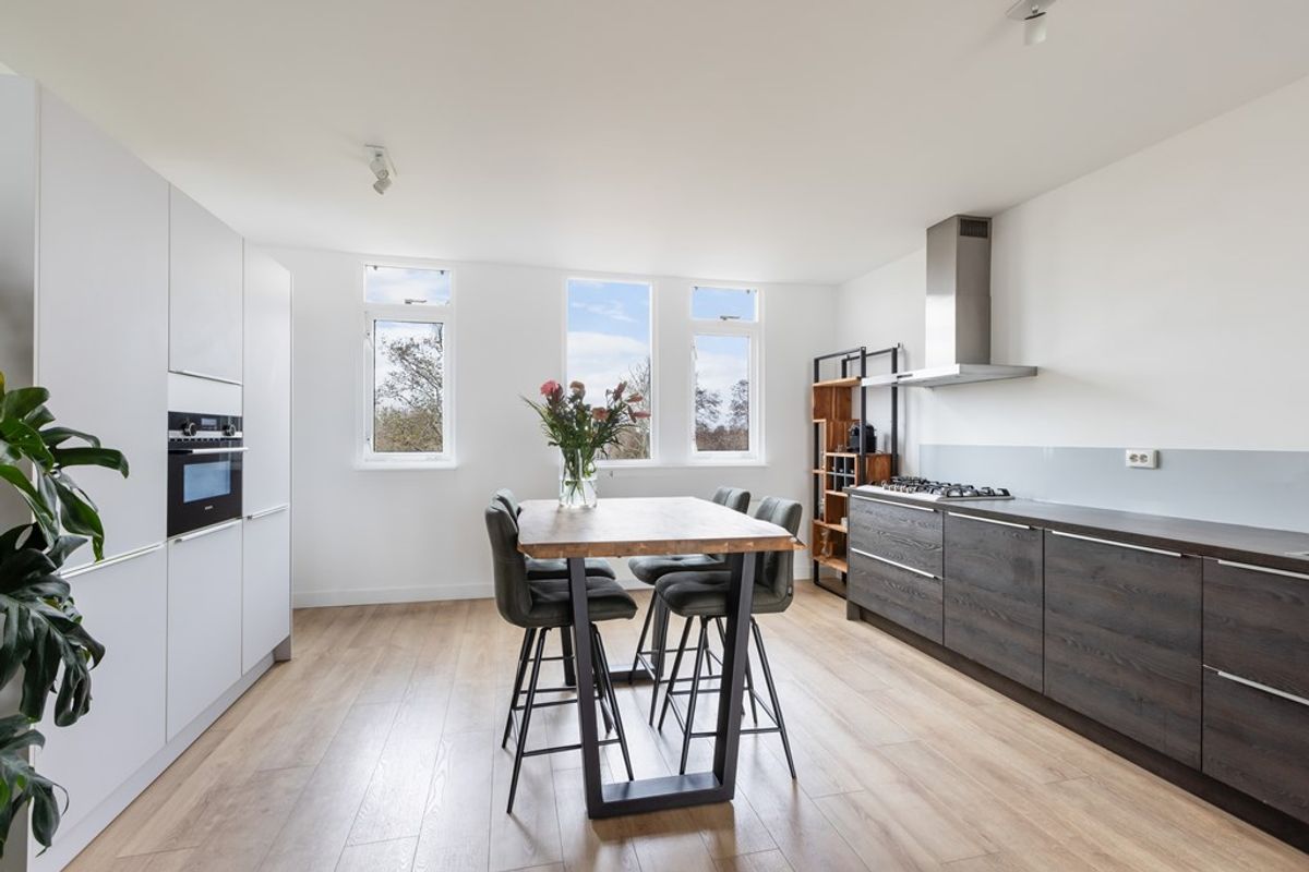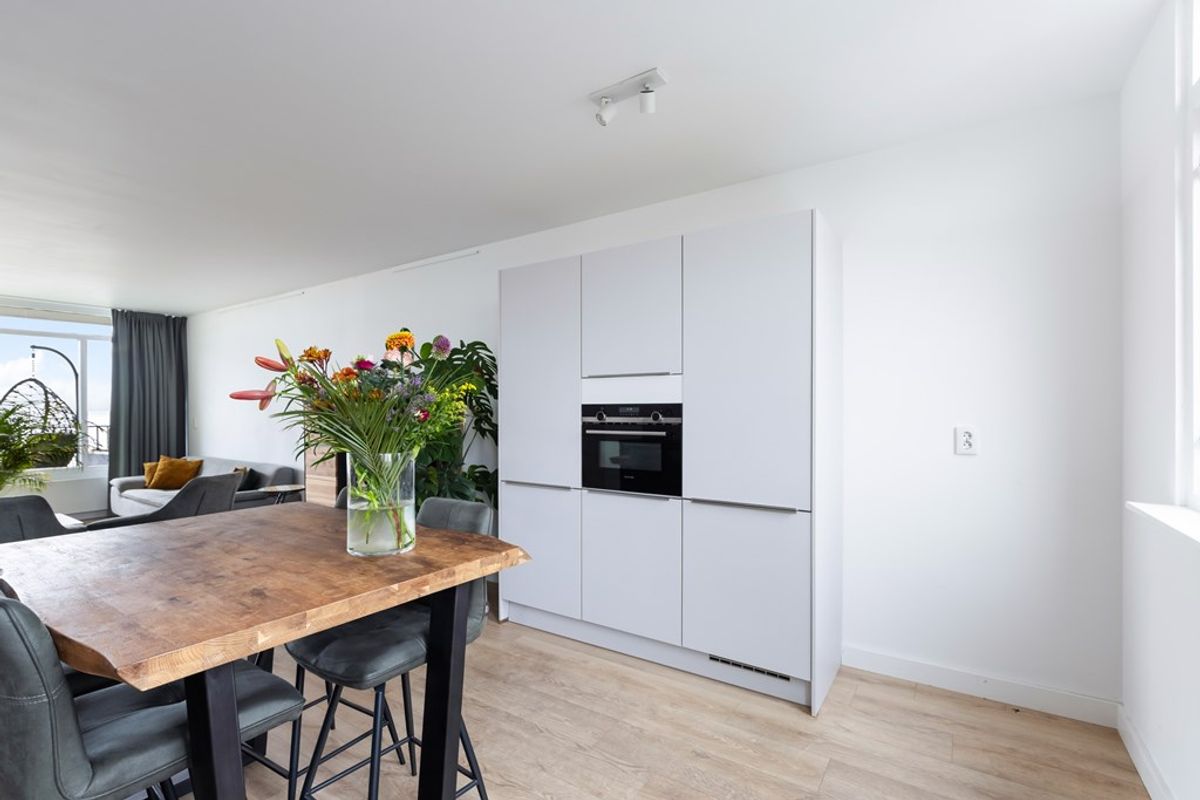 De open keuken sluit aan op de woonkamer en is praktisch ingericht. De keuken is voorzien van diverse inbouwapparatuur, waaronder een 5-pits gasstel, afzuigkap, combi-magnetron, vaatwasser en koel-vriescombinatie. De opstelling biedt voldoende werk- en bergruimte en sluit goed aan bij het dagelijkse gebruik.