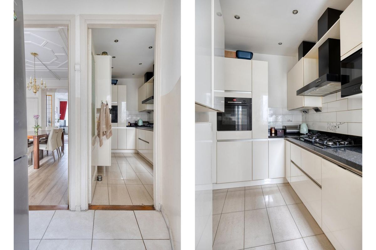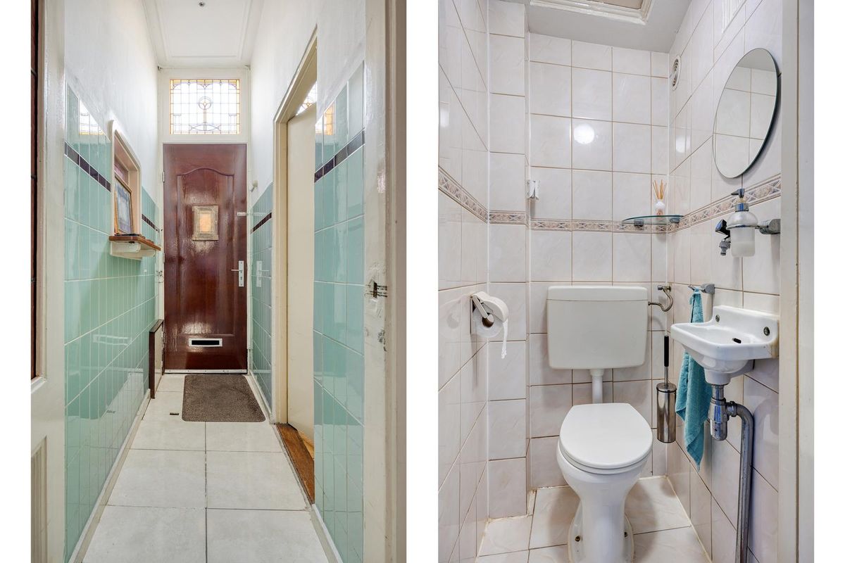 Bij binnenkomst word je verwelkomd door originele geglazuurde wandtegels in de vestibule en gang, een ware lust voor het oog voor liefhebbers van authentieke bouwstijlen. De klassieke kamer-en-suite separatie met schuifdeuren en inbouwkasten verdeelt de woning in een riante woonkamer aan de voorzijde en een gezellige eetkamer aan de tuinzijde, beide met hoge plafonds en een mooie lichtinval.