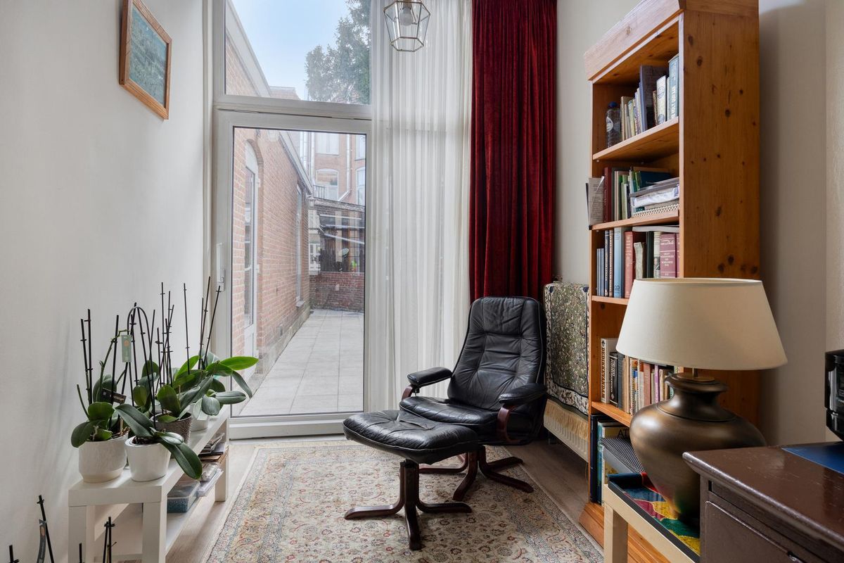 Achter de woning bevindt zich een diepe en zonnige achtertuin, waar je in alle rust kunt genieten van buitenleven in de stad.