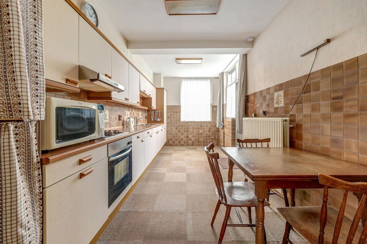 Hoekwoning met een uitgebouwde keuken.