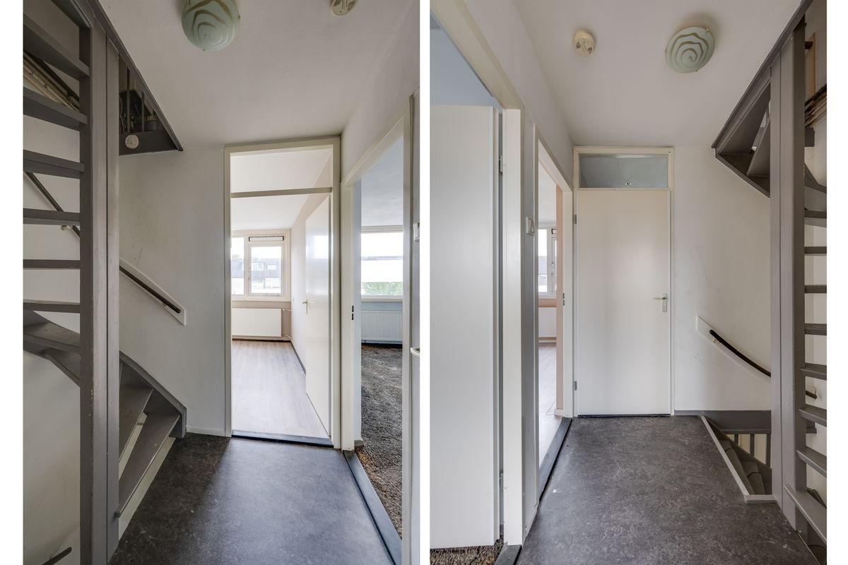 Overloop met toegang tot 3 ruime slaapkamers, de badkamer en de vaste trap naar de tweede verdieping. Alle aluminium kozijnen op deze verdieping zijn voorzien van dubbel glas.
