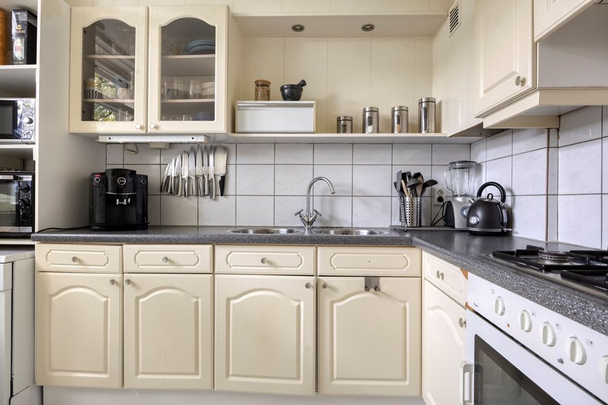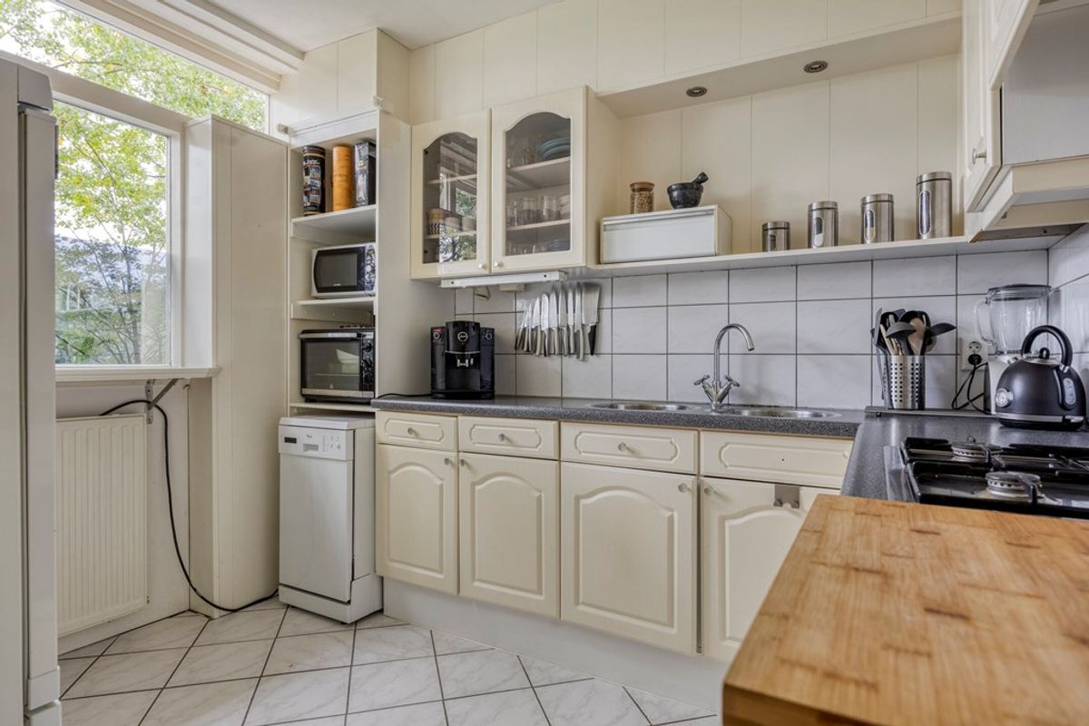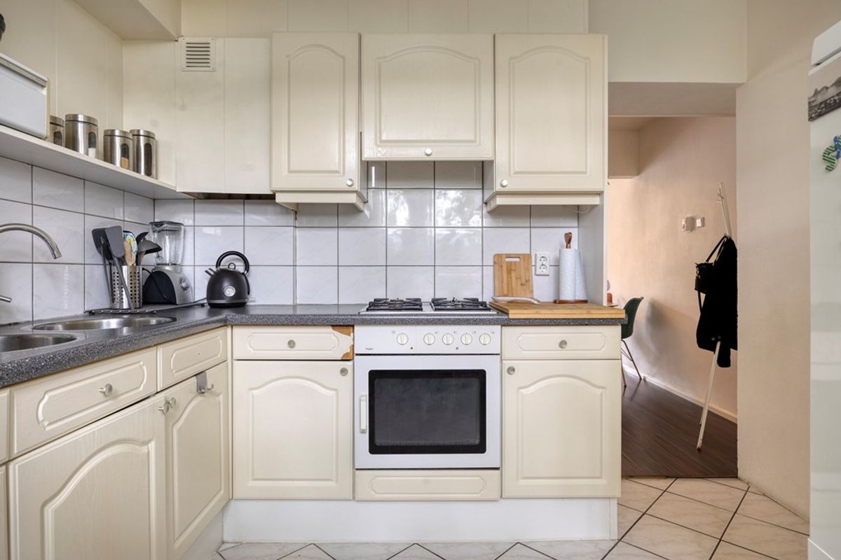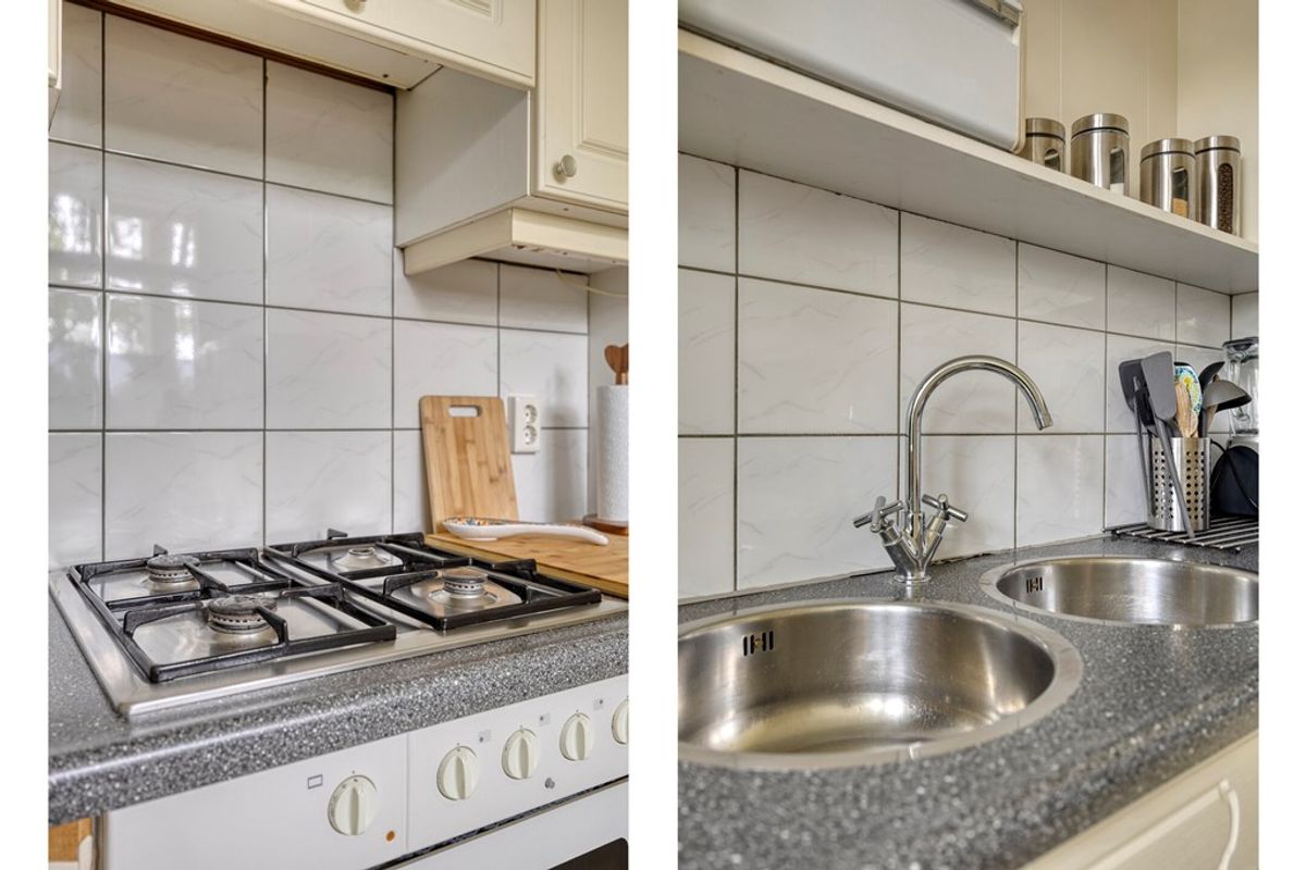 Aan de voorzijde bevindt zich de keuken, die eenvoudig is uitgevoerd maar voldoende ruimte biedt om naar eigen wens te moderniseren.