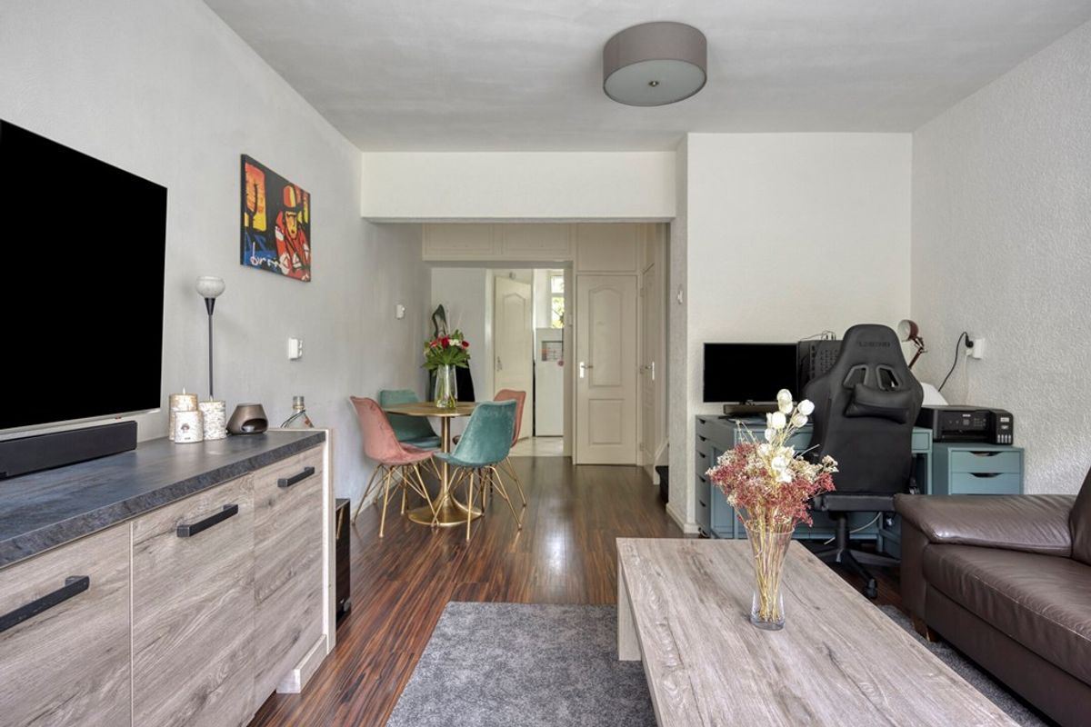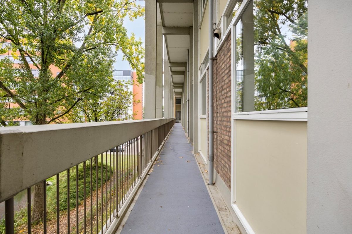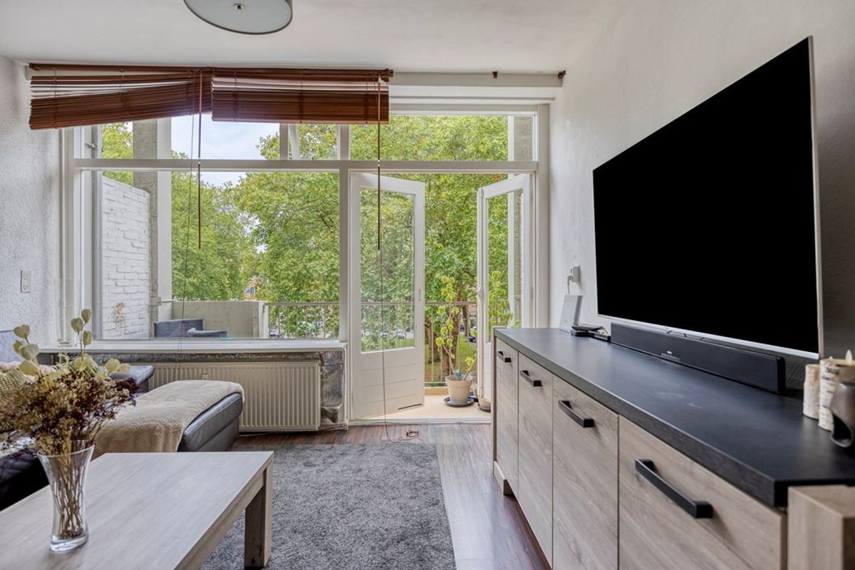 Vanuit de woonkamer is er toegang tot het balkon, waar je heerlijk kunt genieten van de rustige en groene omgeving.